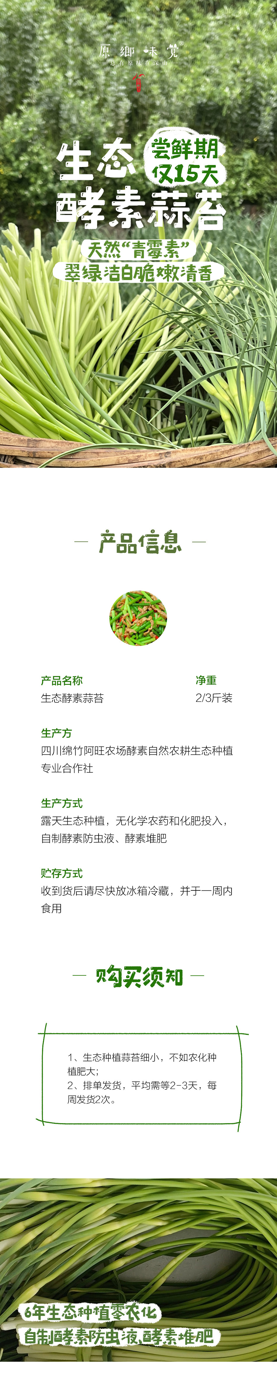 生态酵素蒜苔(基地直发-京东包邮)| 2/3斤装,来自四川绵竹,生产者:熊然【合作生产,公平贸易】