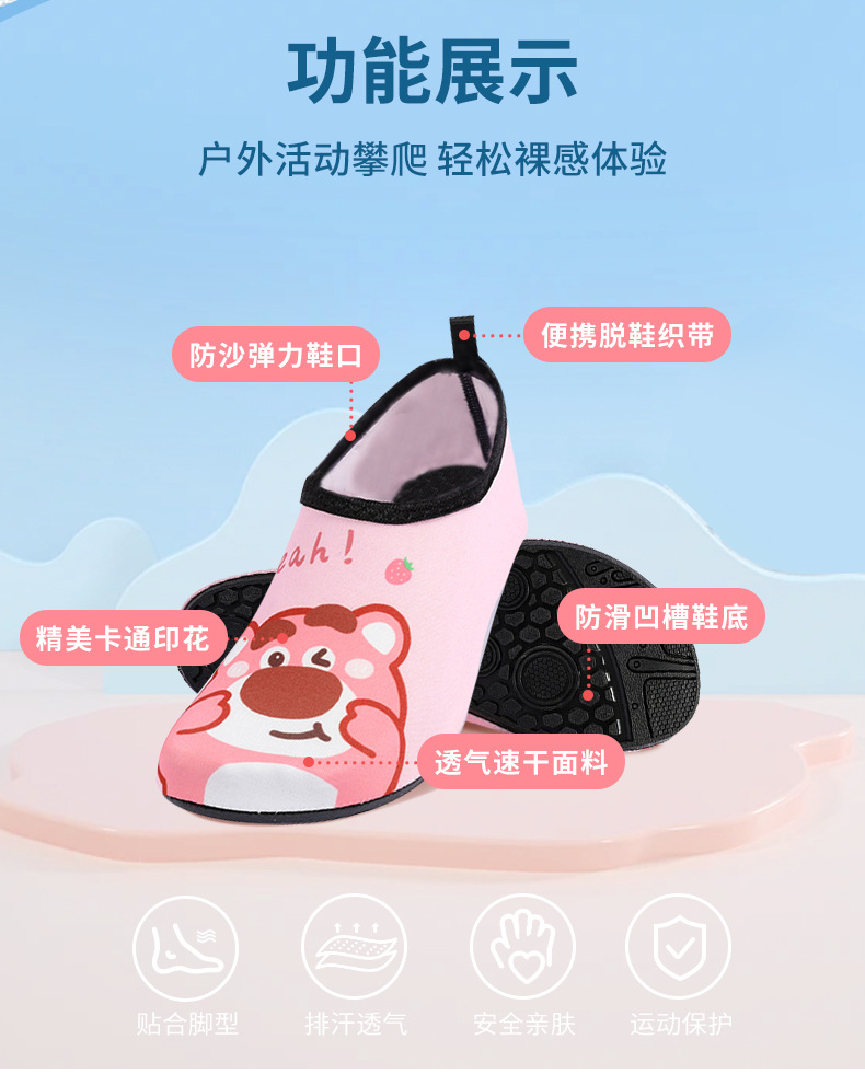 【玩转夏日❗️儿童亲子沙滩鞋】萌趣 IP印花颜值拉满,轻松俘获小朋友芳心,加厚鞋底防滑耐磨,防沙透气不闷脚,弹性面料舒适不挤脚,潜水袜宝宝游泳鞋儿童地板鞋溯溪鞋袜QQ