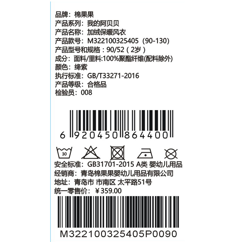 | 袖长(后中量) | 46 | 50 | 54 | 58.5 | 63 |