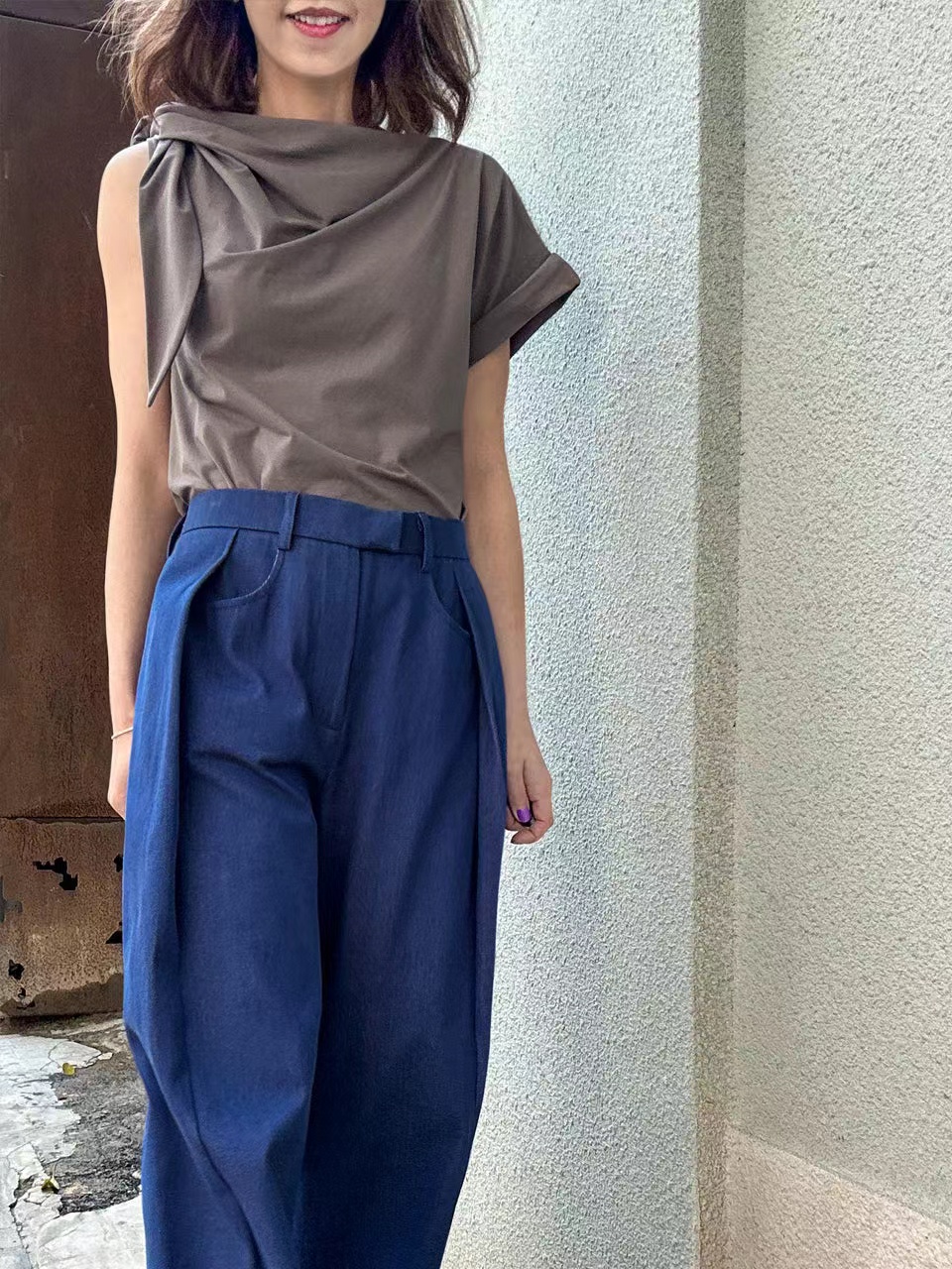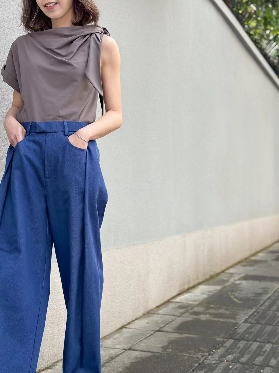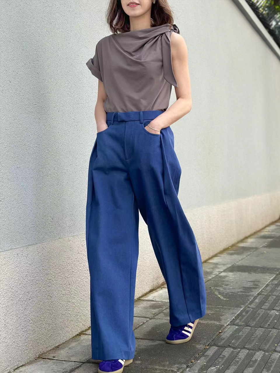 TYNVIE 后松紧腰阔腿裤-牛仔蓝