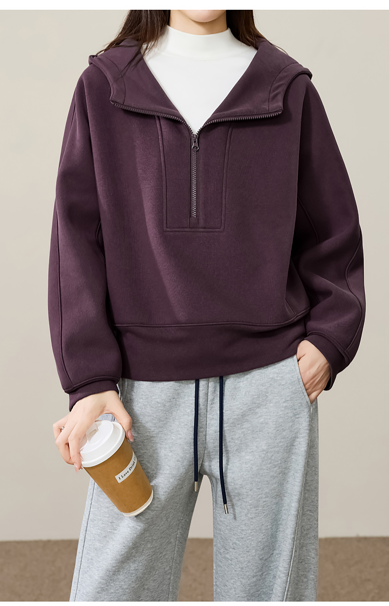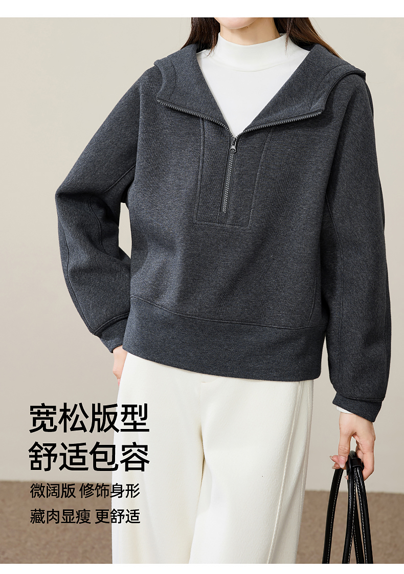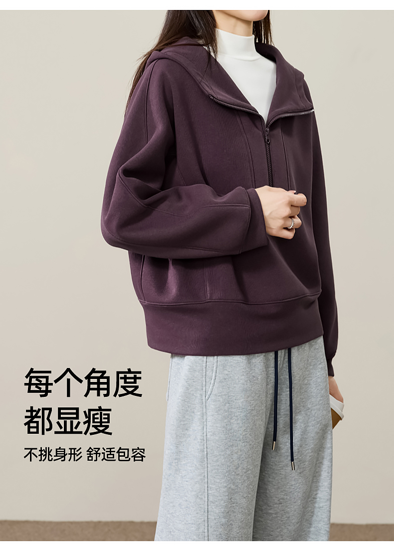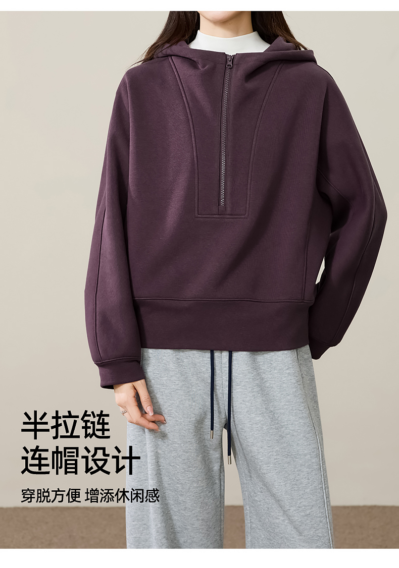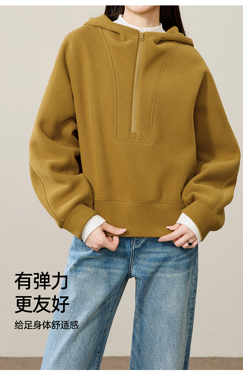 【薄绒加厚-连帽卫衣】逸阳冬新款宽松保暖短款小个子套头上衣5374
