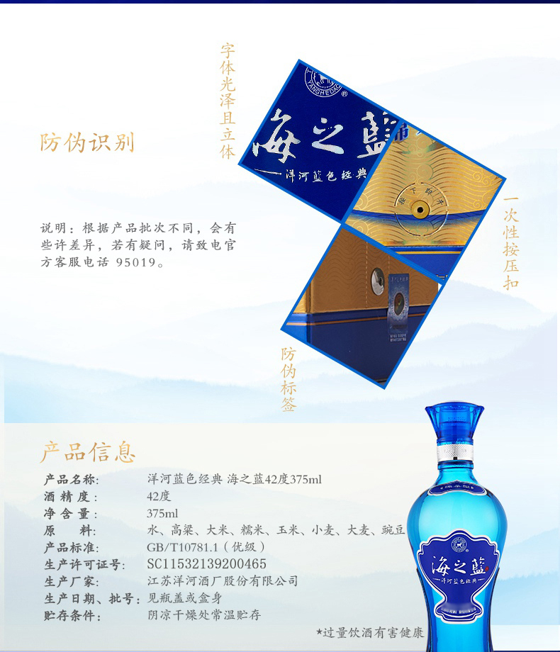 [洋河海之蓝]42度-浓香型白酒-375ml-多规格可选