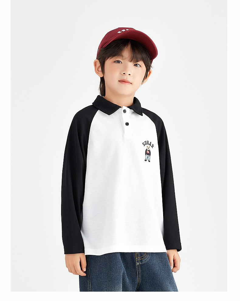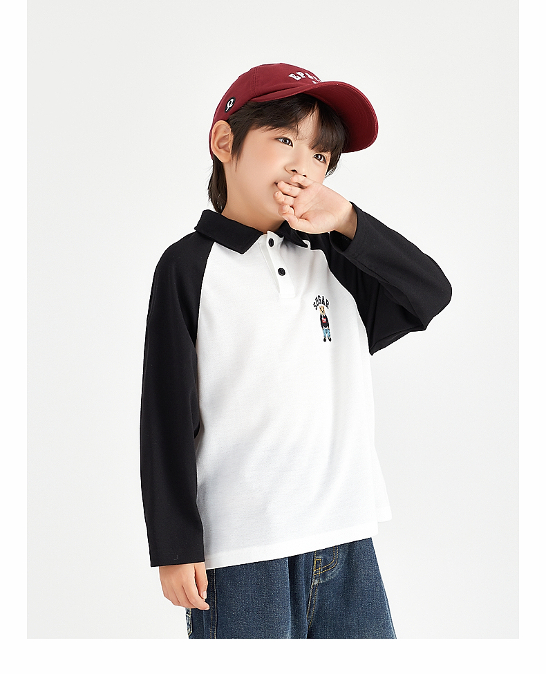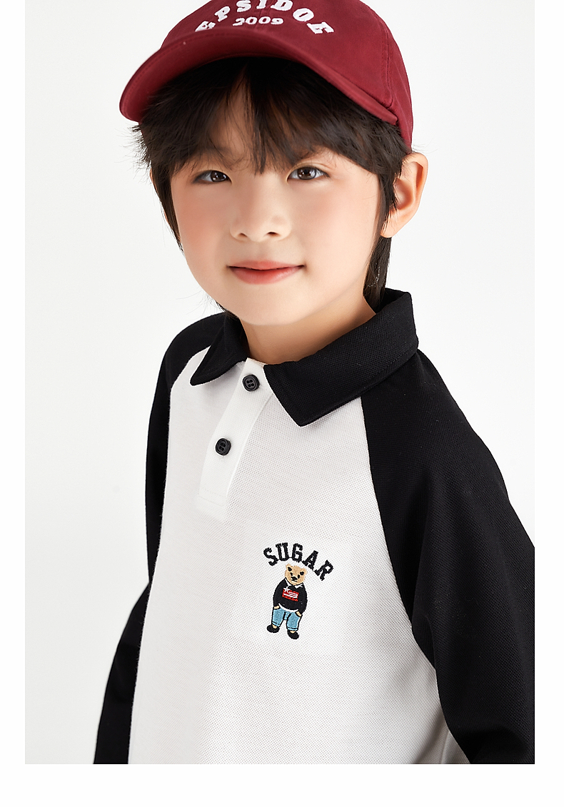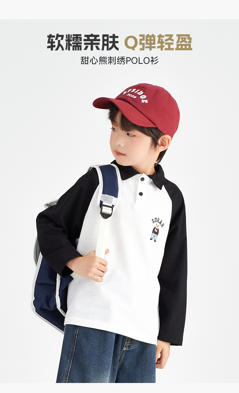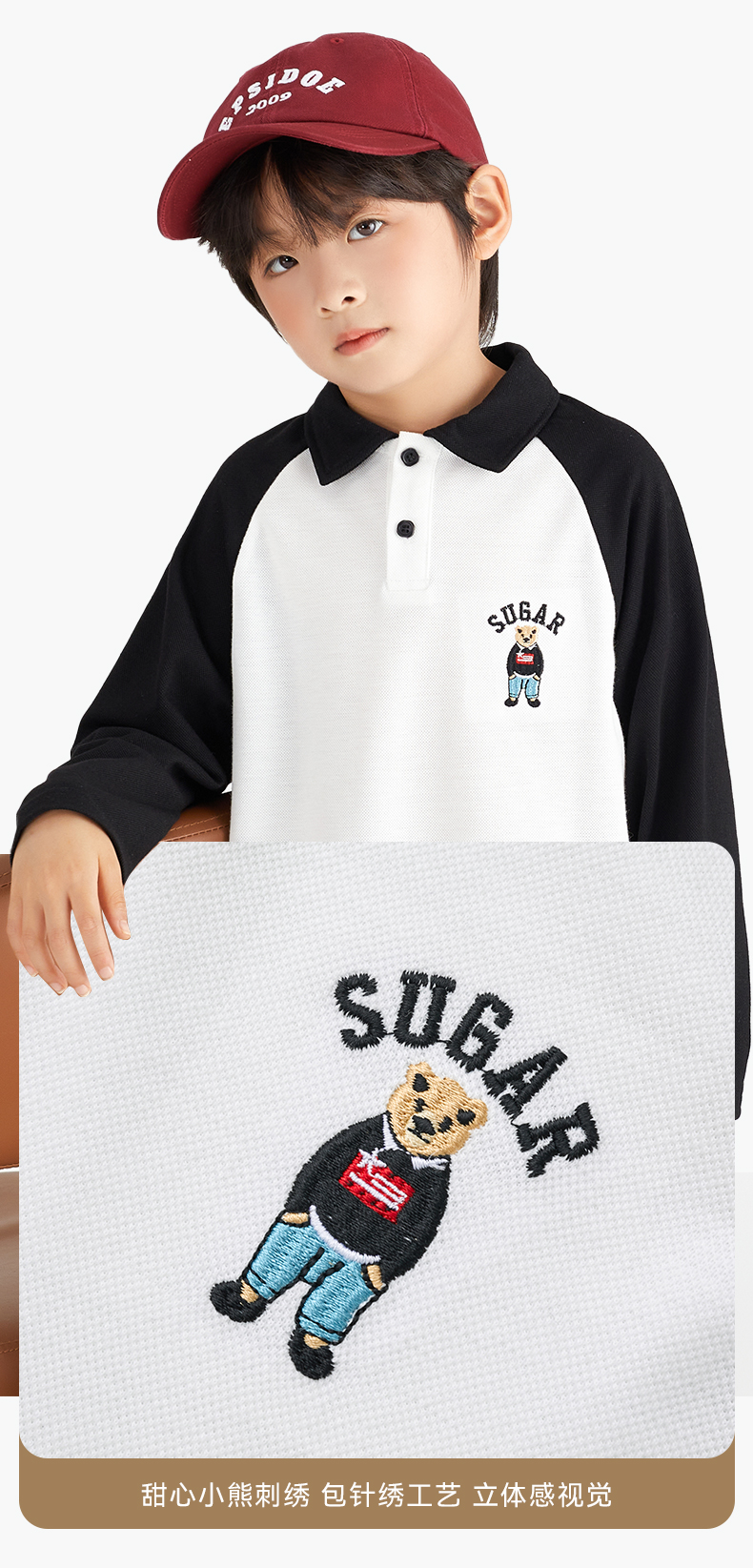 【件件底价,童装双倍积分】多多家 男童POLO衫2024新款儿童春秋季小熊刺绣T恤中大童秋装上衣9666