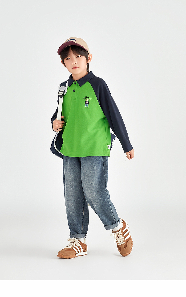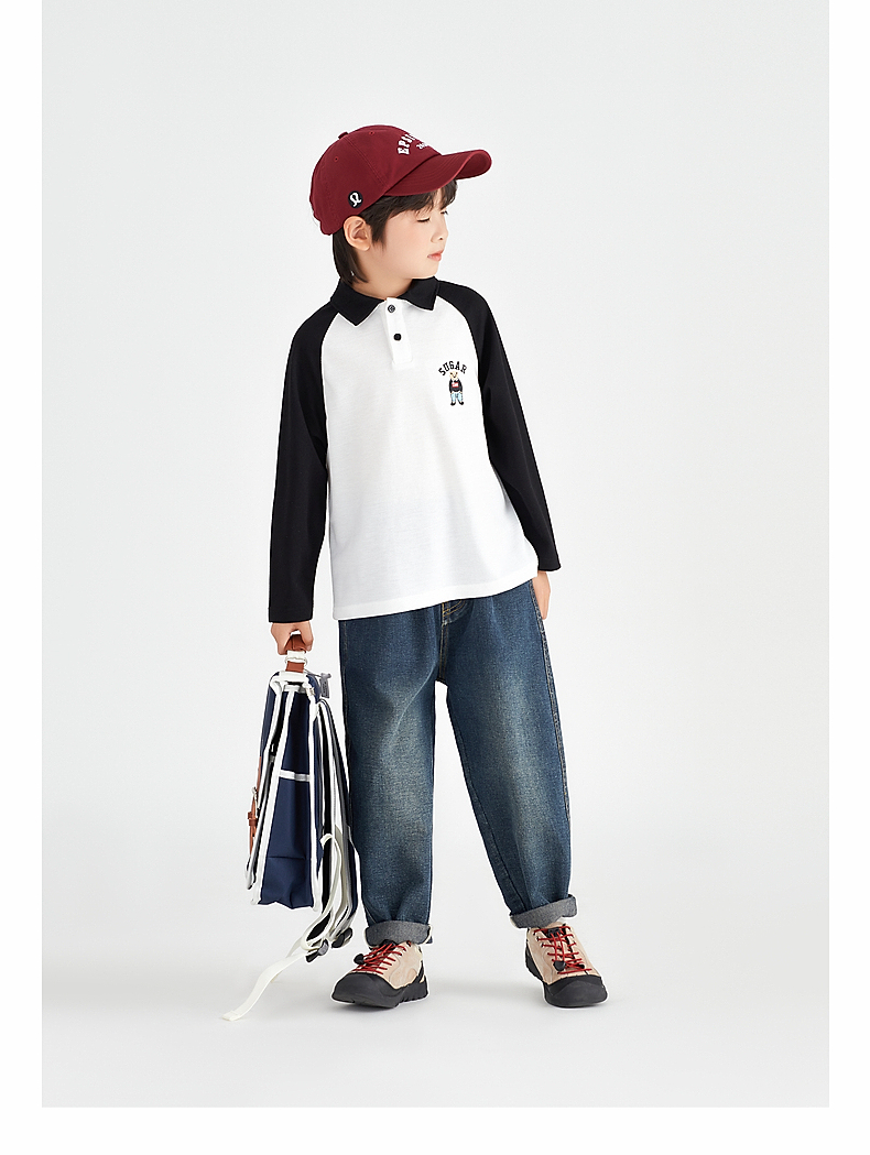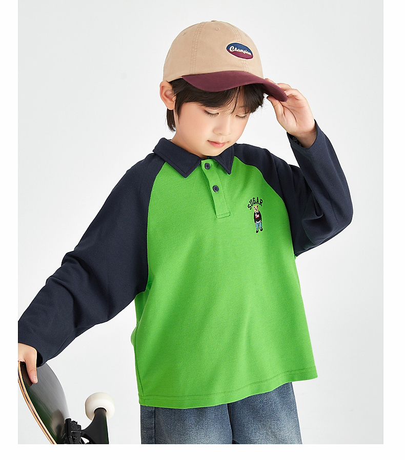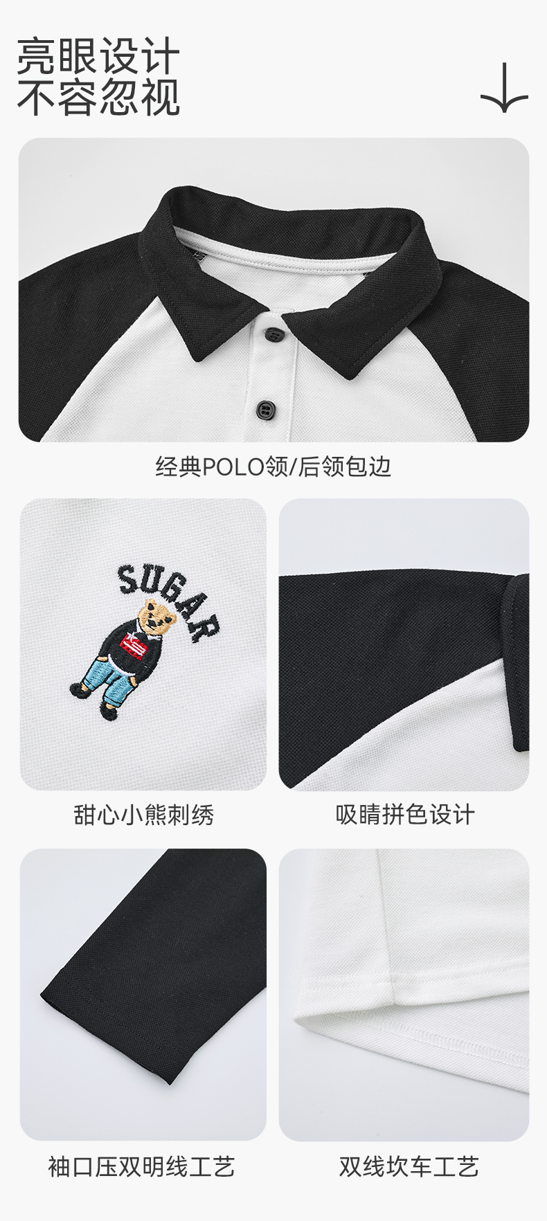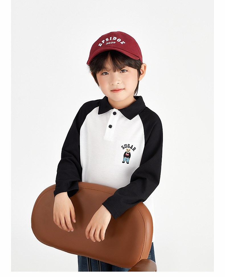 【件件底价,童装双倍积分】多多家 男童POLO衫2024新款儿童春秋季小熊刺绣T恤中大童秋装上衣9666