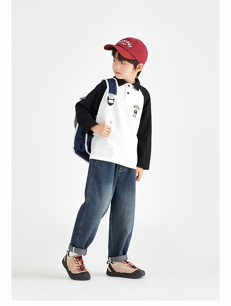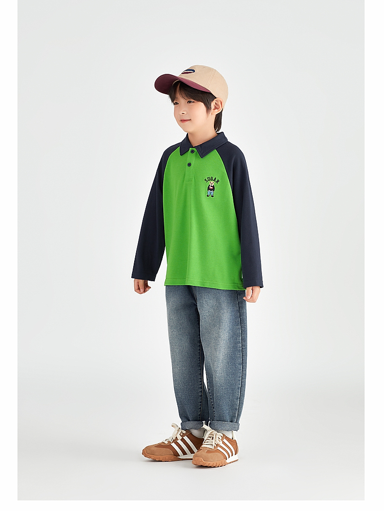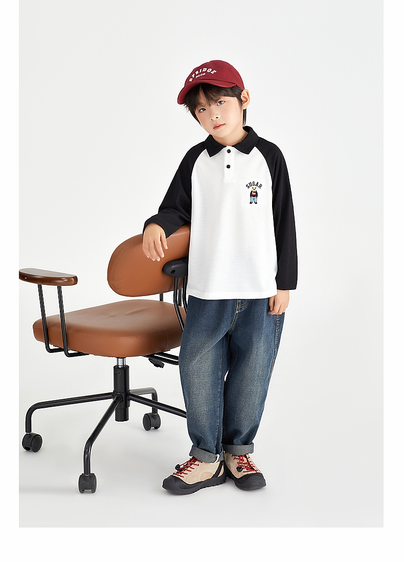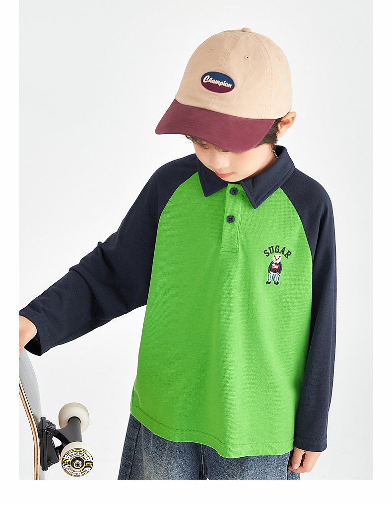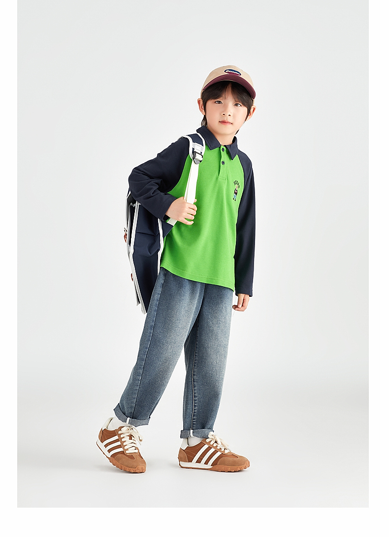 【件件底价,童装双倍积分】多多家 男童POLO衫2024新款儿童春秋季小熊刺绣T恤中大童秋装上衣9666