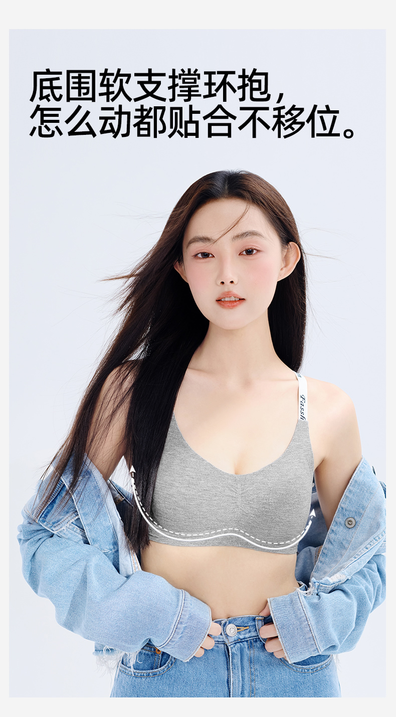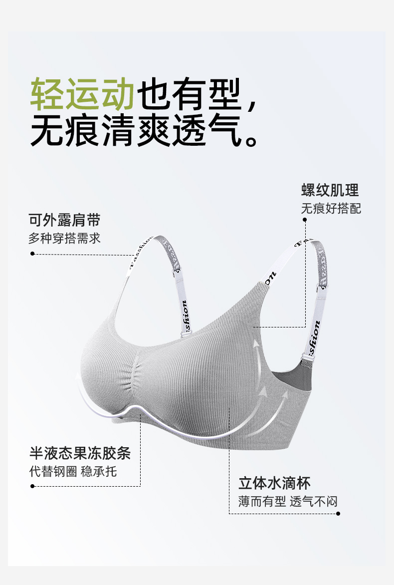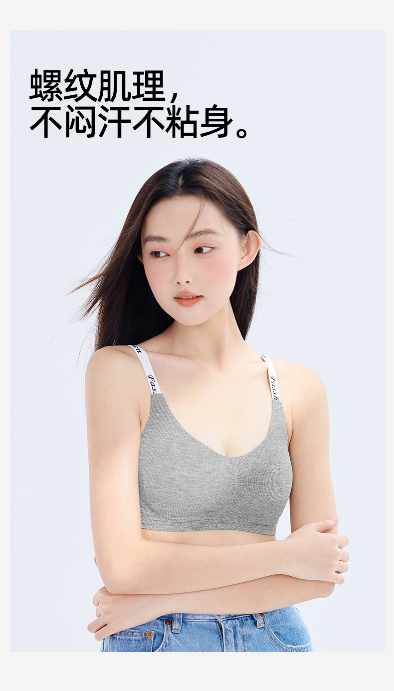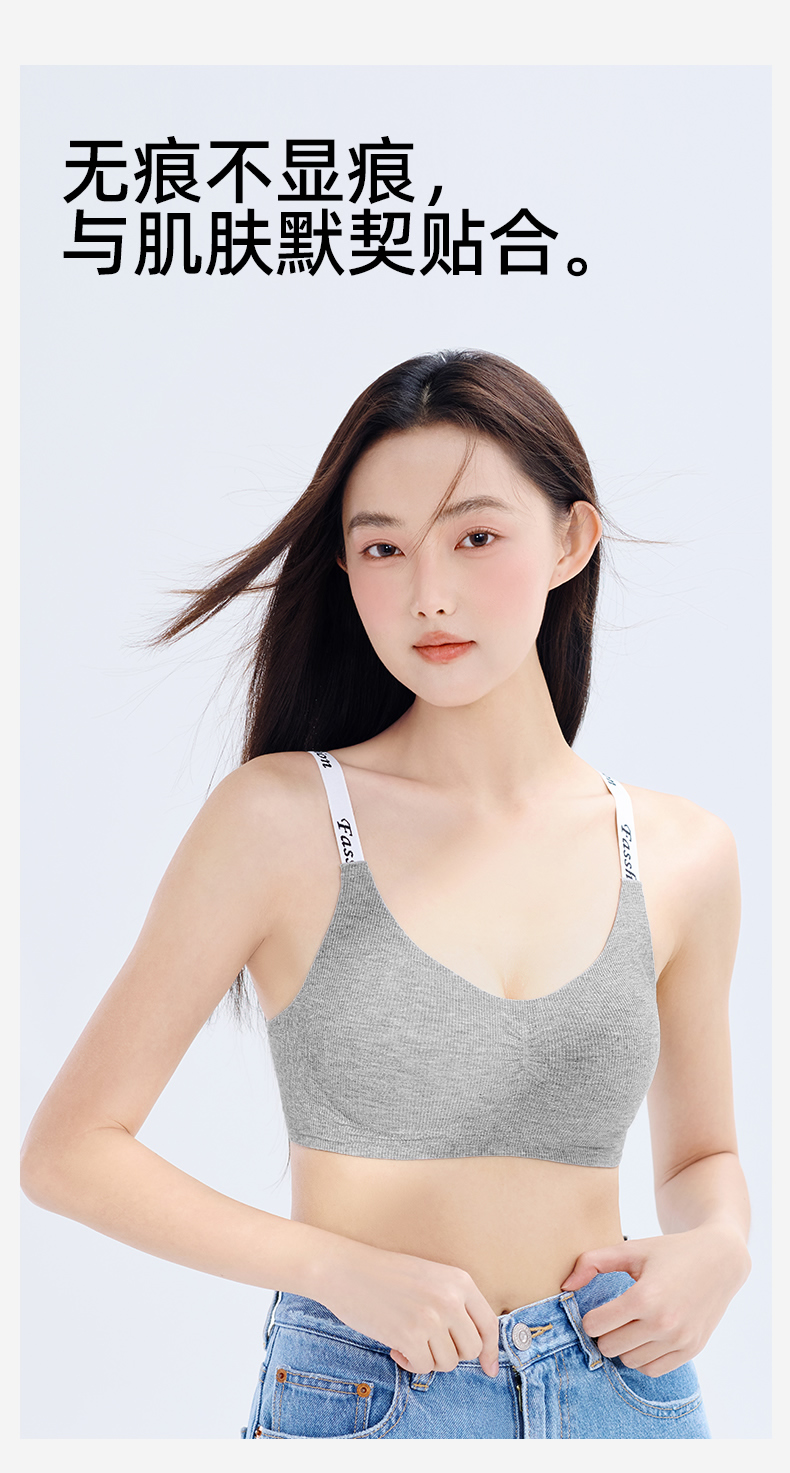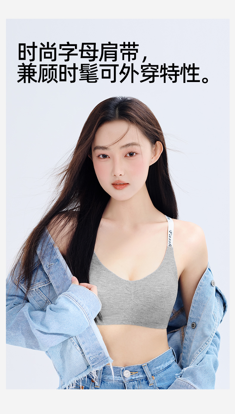 熳洁儿 无痕内衣时尚字母舒适无钢圈微聚拢文胸轻运动ABC杯24261517