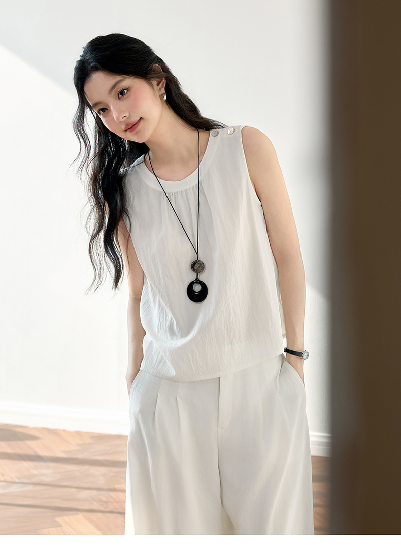 【严选】诗凡黎山本风圆领衬衫2025夏新款慵懒度假轻熟风气质小上衣女7G4320531