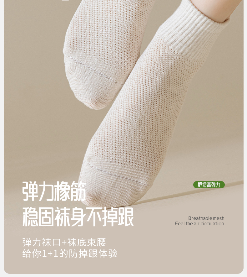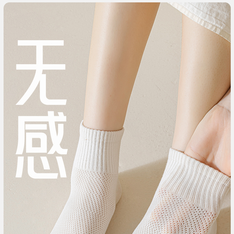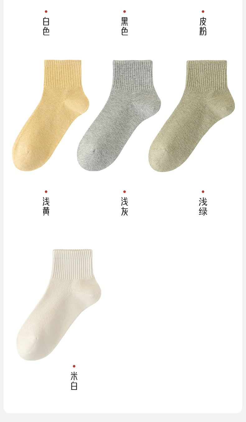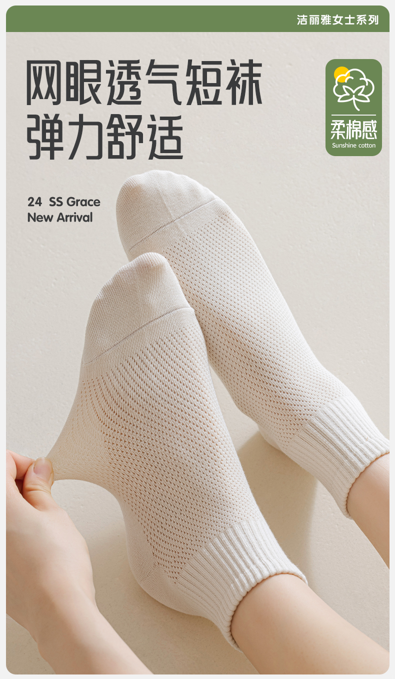 洁丽雅女士短袜网眼透气吸湿排汗亲肤百搭纯色简约薄款女袜短袜