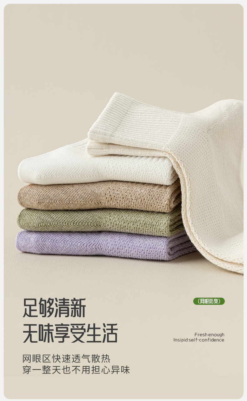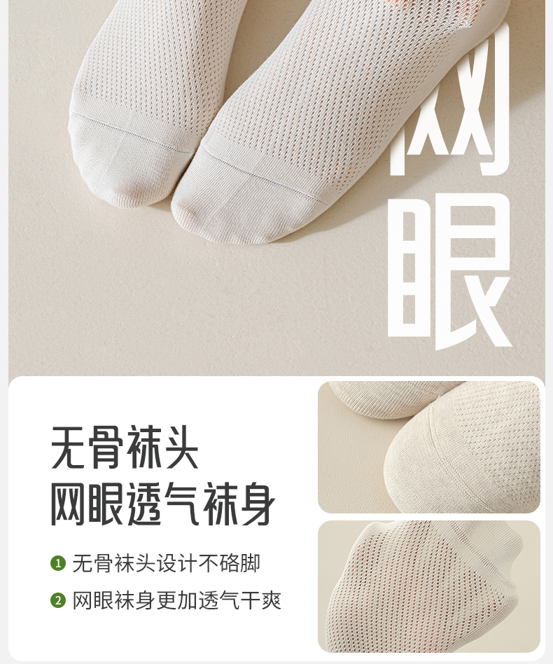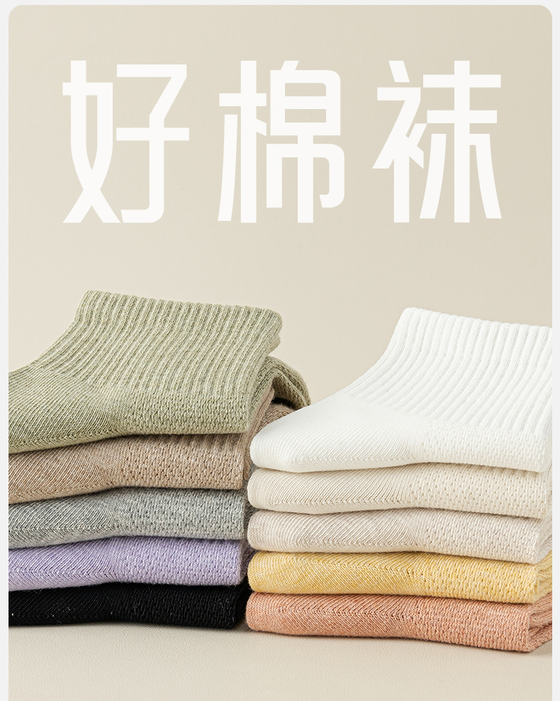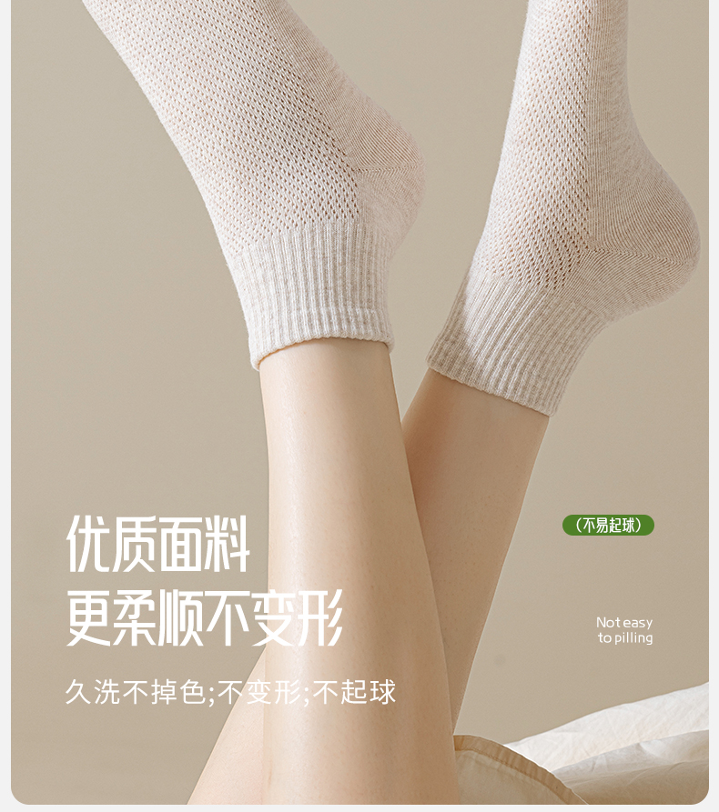 洁丽雅女士短袜网眼透气吸湿排汗亲肤百搭纯色简约薄款女袜短袜