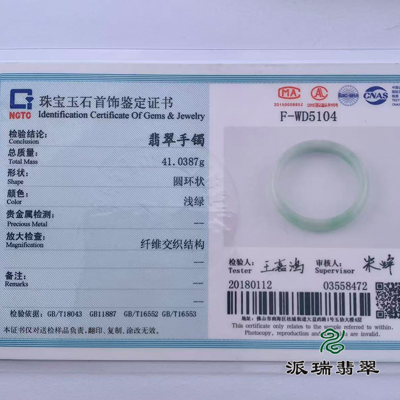 派瑞翡翠 翡翠手镯 糯种 浅绿