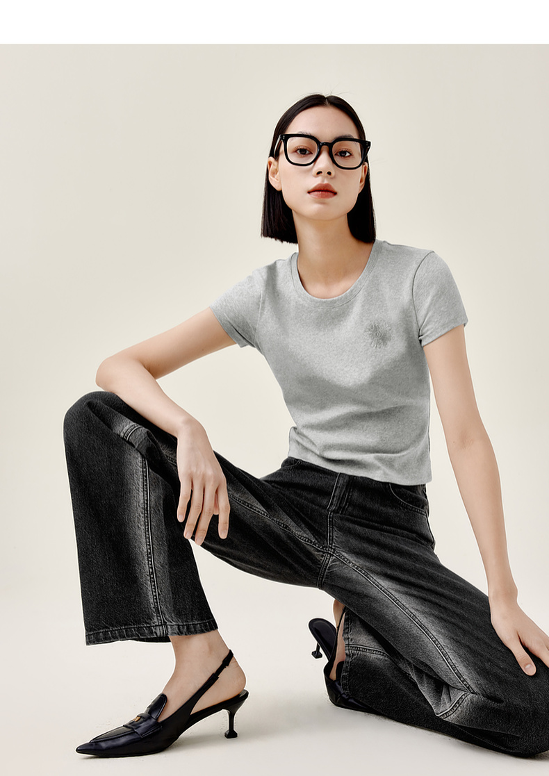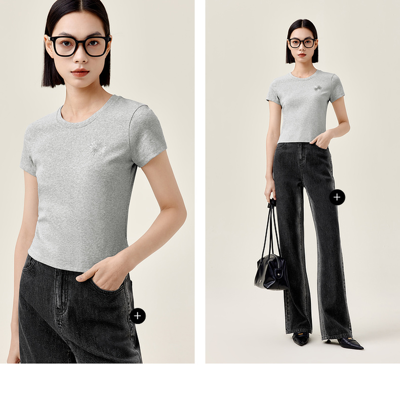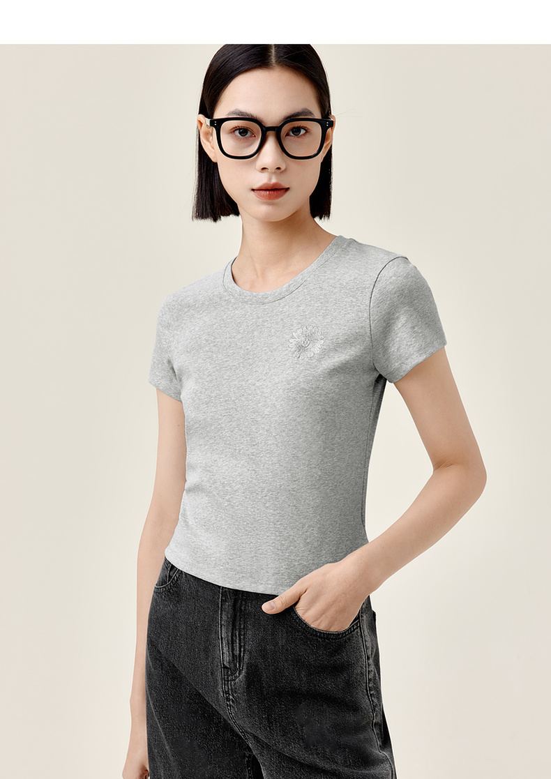 【商场同款】伊芙丽圆领修身舒适T恤1F4300281