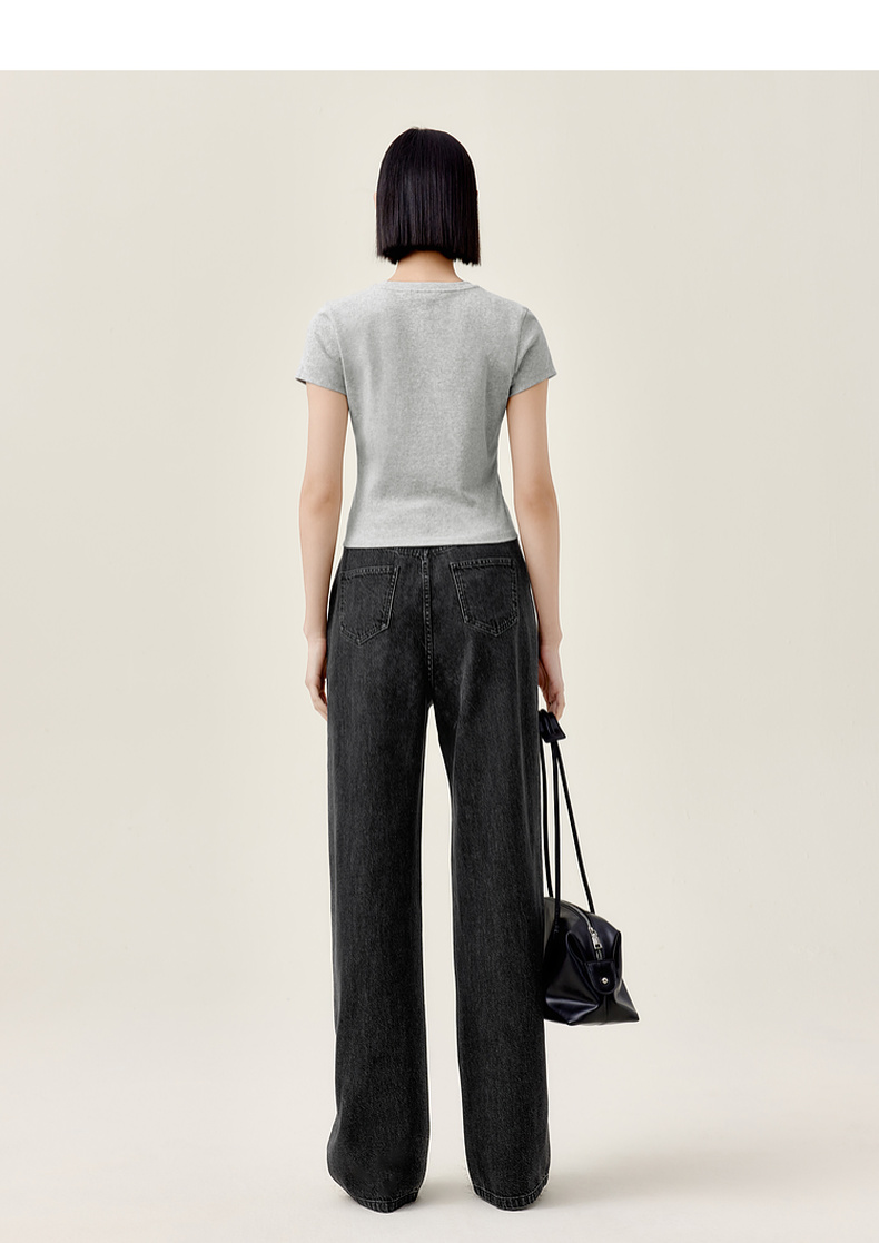 【商场同款】诗凡黎复古阔腿牛仔裤25秋新款丹宁弯刀裤3G9151701