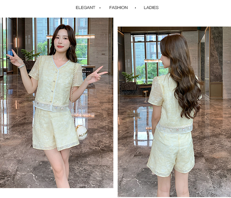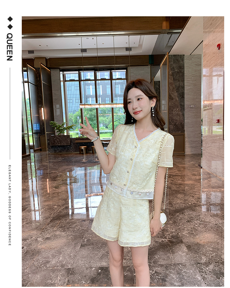 奢姿大码2026夏季重工蕾丝刺绣小香风两件套胖妹妹遮肉气质套装9962960128