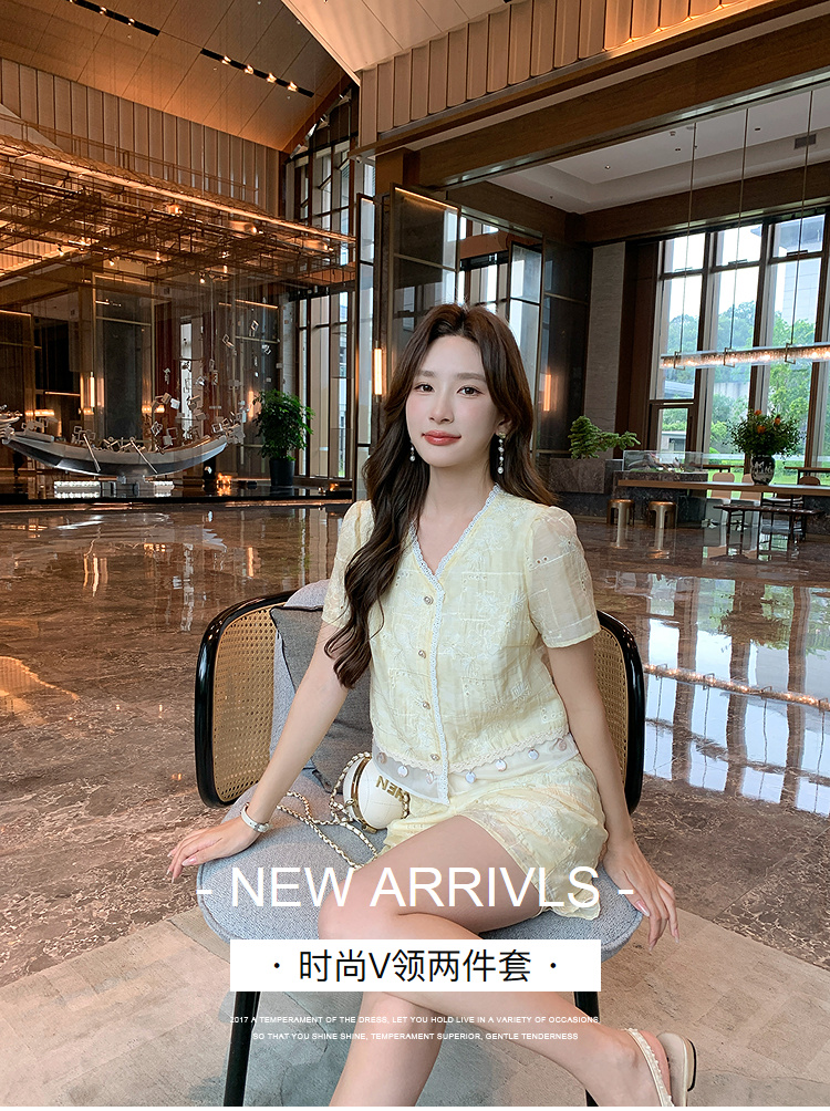 奢姿大码女装2026夏季波西米亚风两件套胖妹妹减龄花边V领套装9952922159