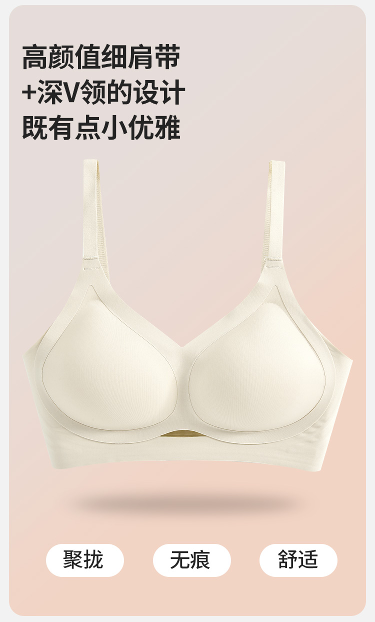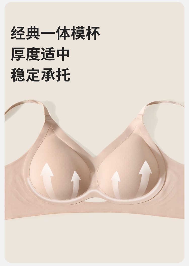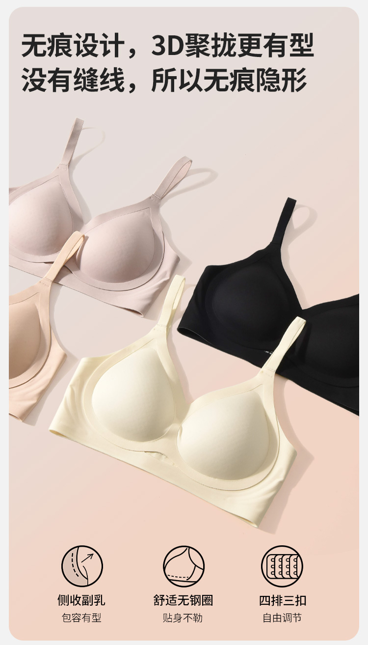 洁丽雅新款3D聚拢文胸舒适无钢圈加高侧比收副乳轻薄透气文胸
