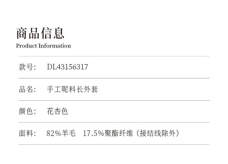 oldcolour冬季气质显瘦设计感保暖双面手工呢料长外套大衣女DL43156317