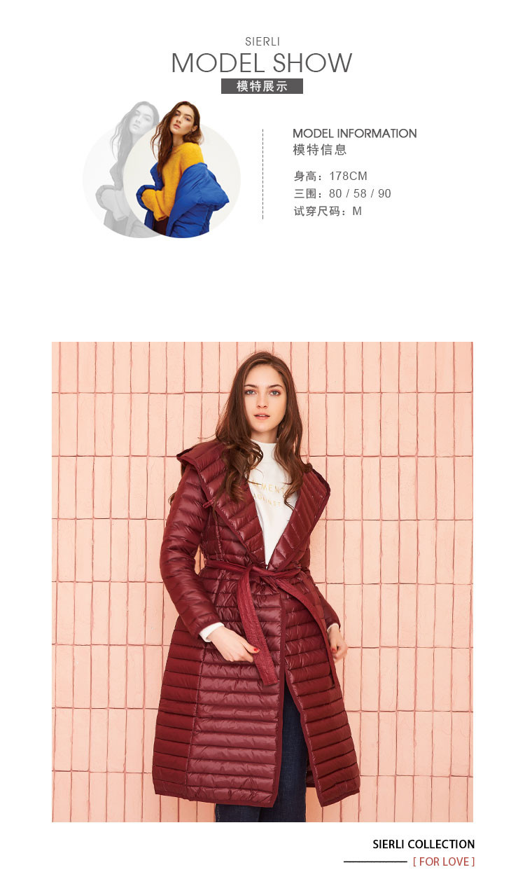 PR00A瑟俪(斯尔丽高端)轻薄自充绒中长款羽绒服