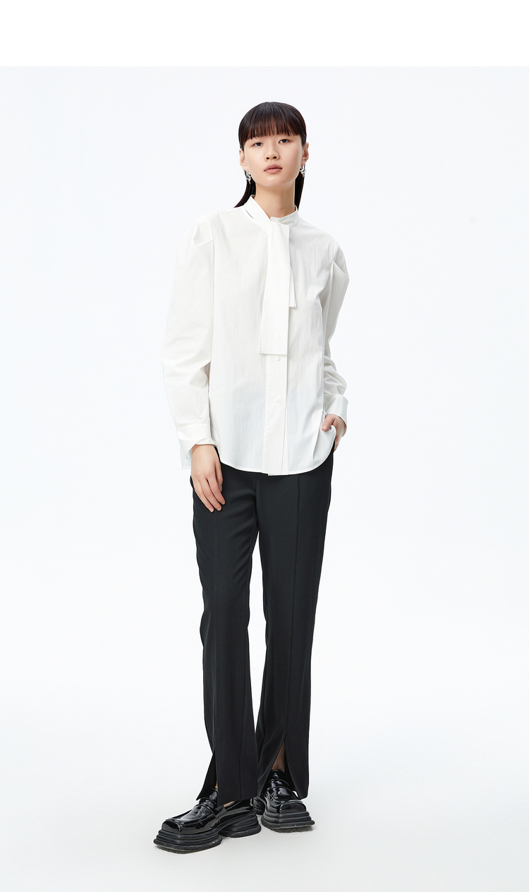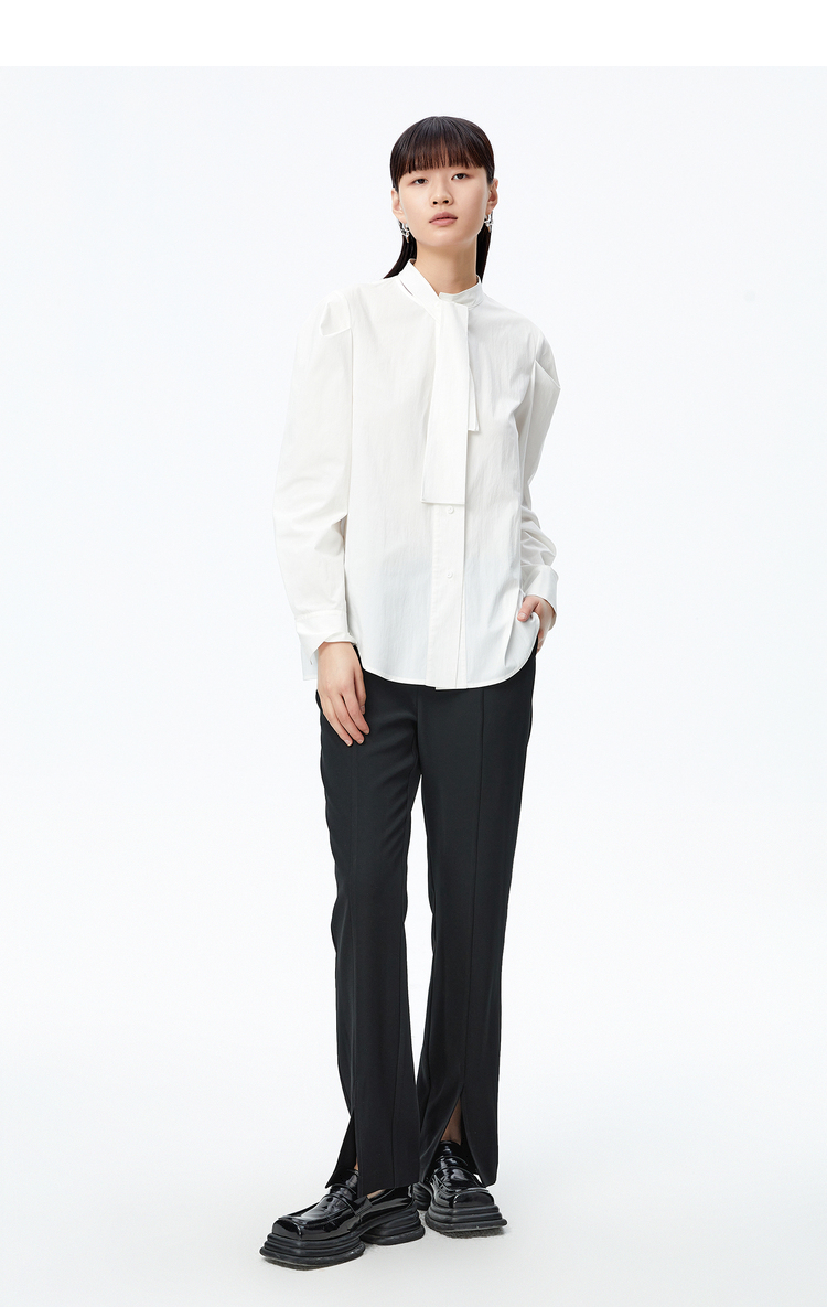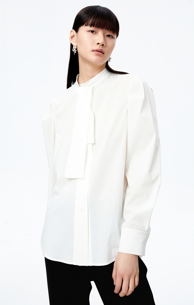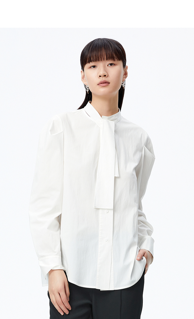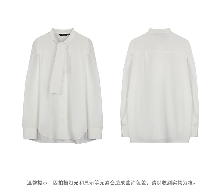 NEELLY纳俪商场同款2022秋季新款白色衬衫女立领飘带简约上衣休闲N22083B01105