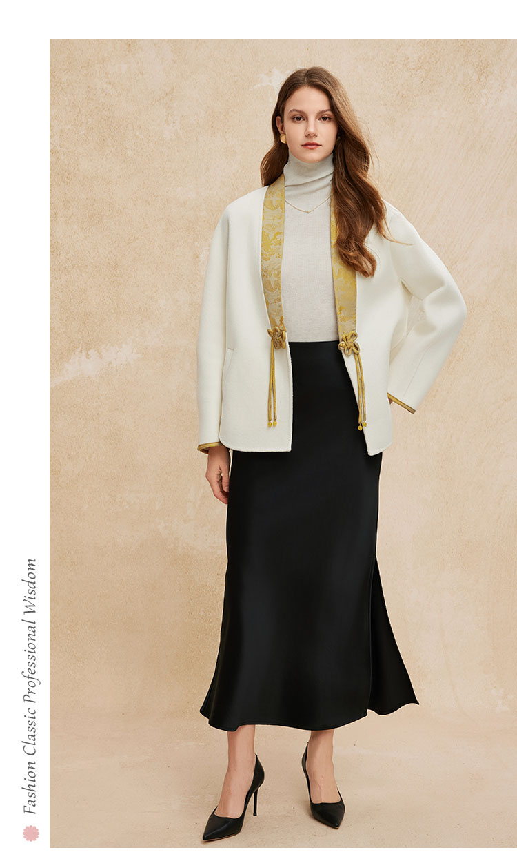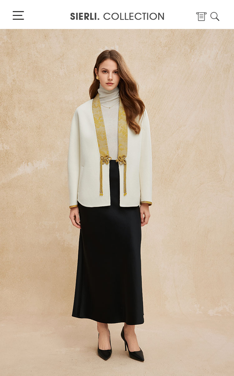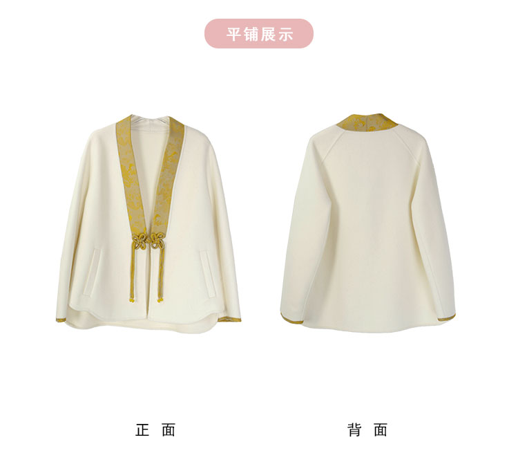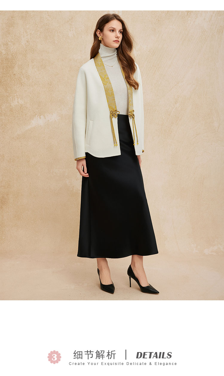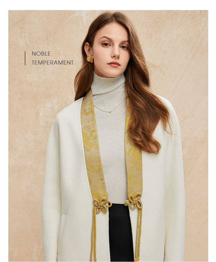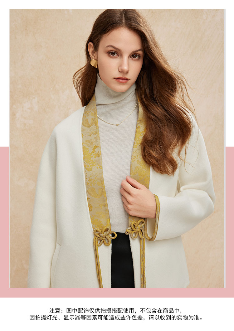 PH959斯尔丽24冬季新款新国风拼提花盘扣廓时尚V型领双面呢羊毛大衣