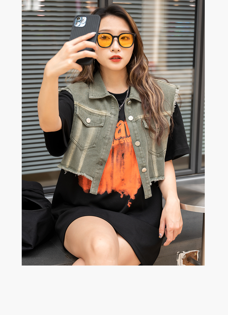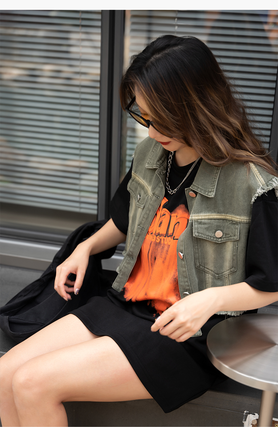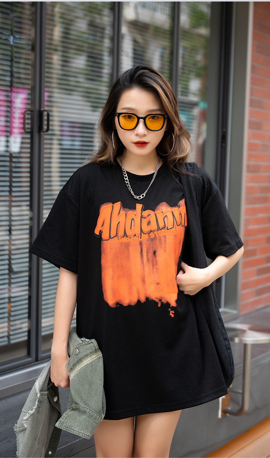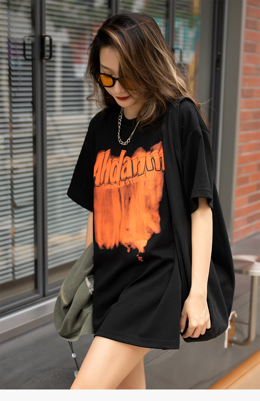 P&X设计师女装夏季新款 宽松休闲中长款圆领T恤 824202550 黑色