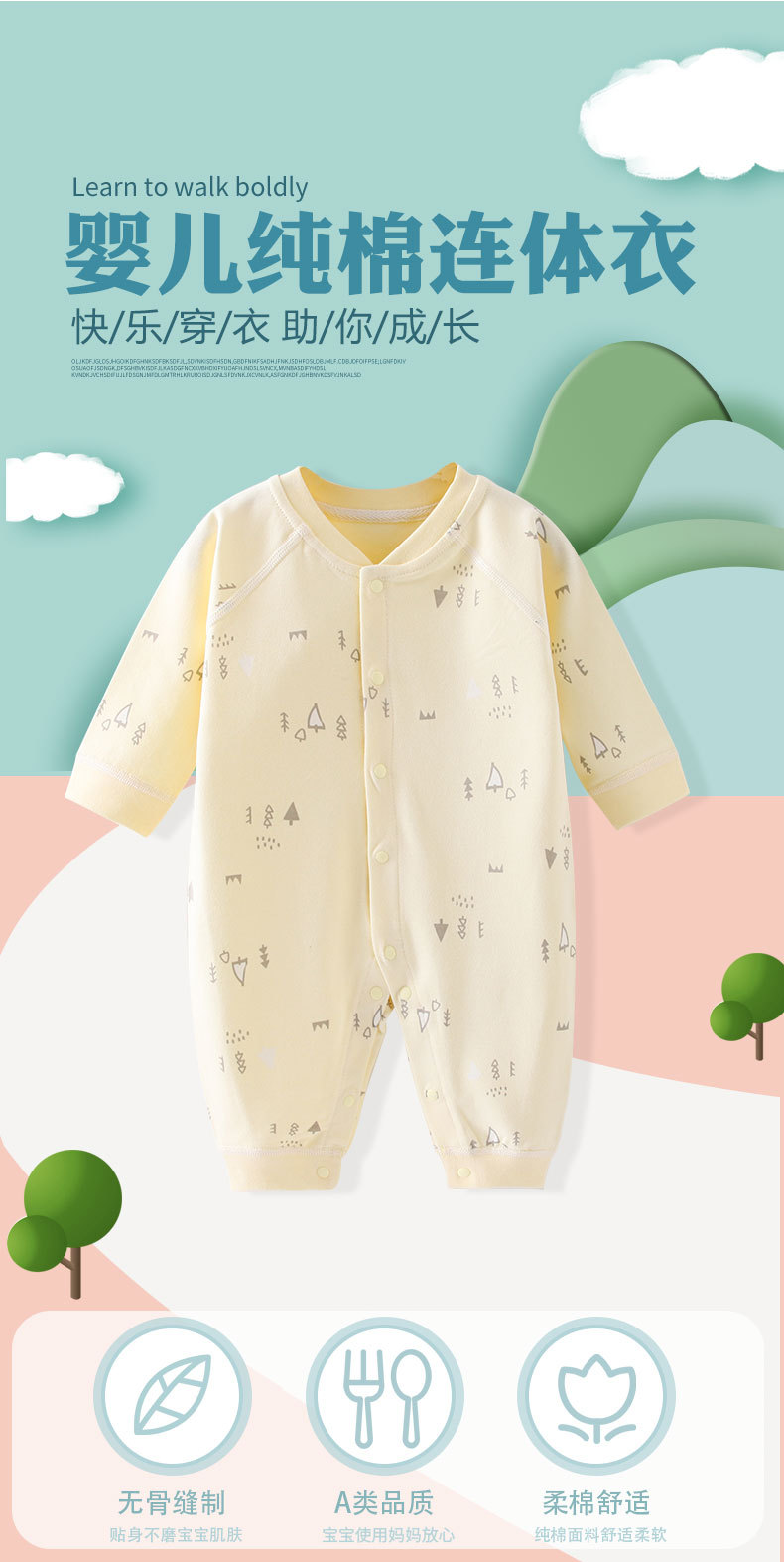 婴儿连体衣春秋季纯棉a类无骨打底衣新生儿衣服0-3月宝宝哈衣爬服