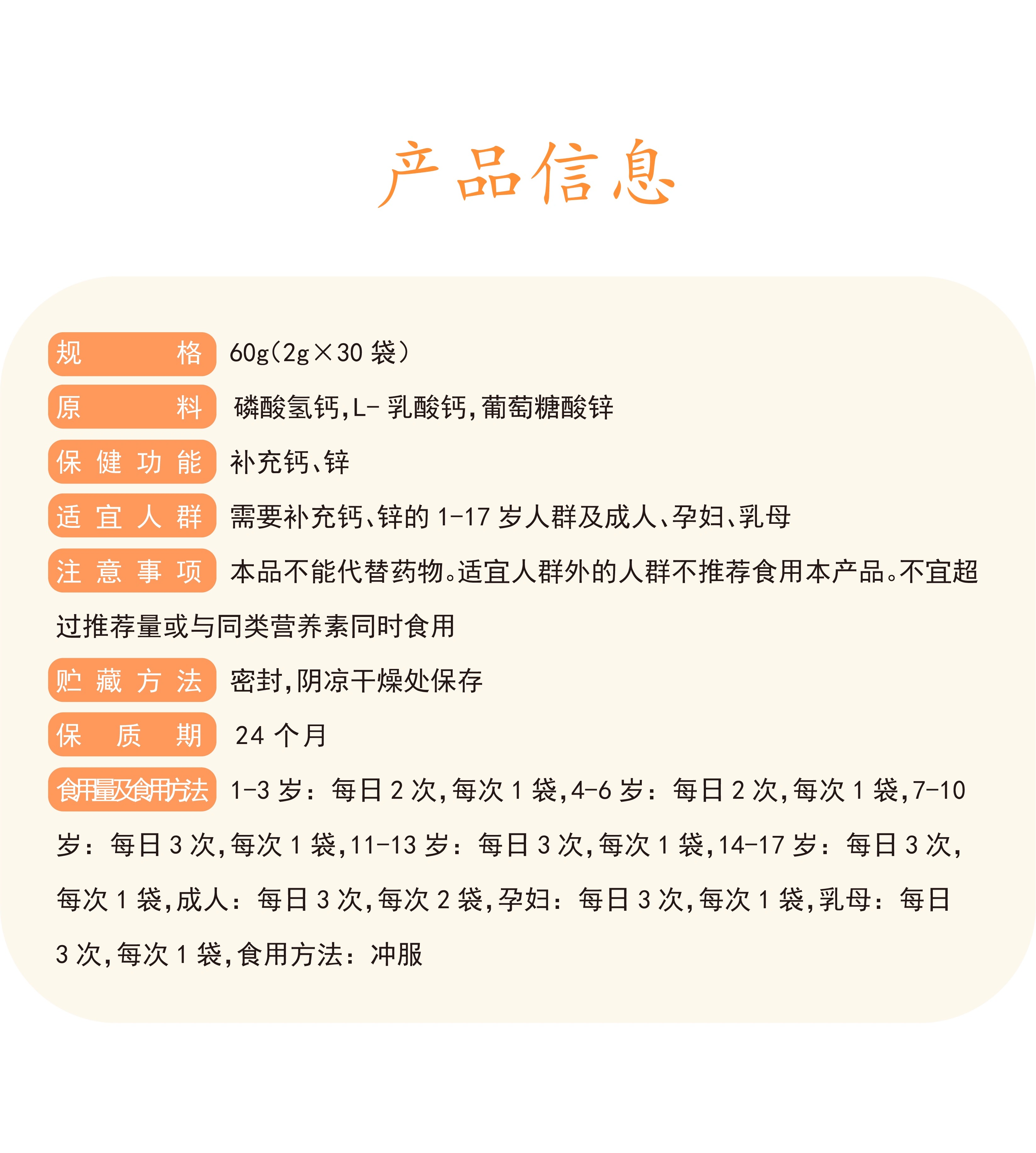 首儿钙锌颗粒 营养素补充剂 60g(2gx 30) 营养补充 助力成长
