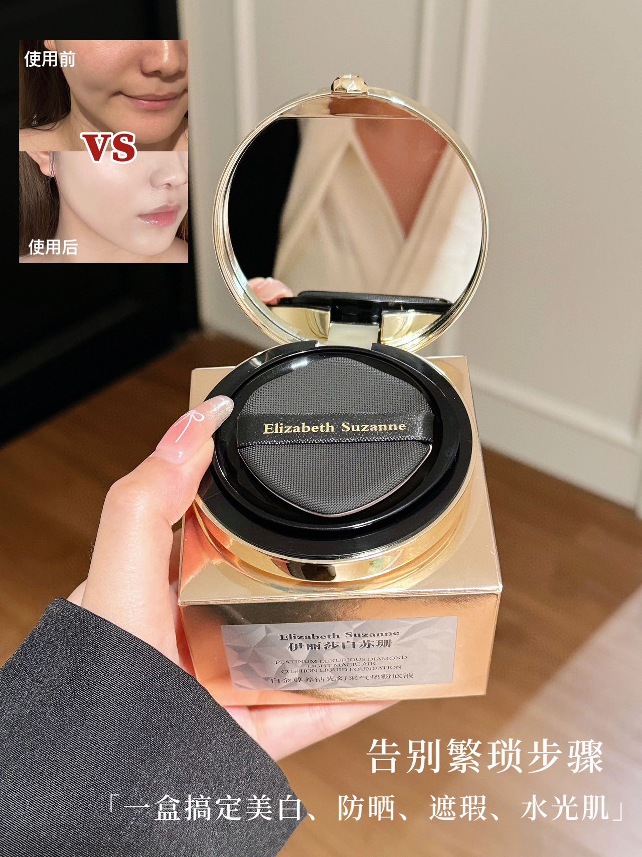 伊丽莎白苏珊·白金尊养钻光气垫 防晒/隔离/妆前/遮瑕/粉底/素颜霜一支顶六支 多效合一无需再买瓶瓶罐罐