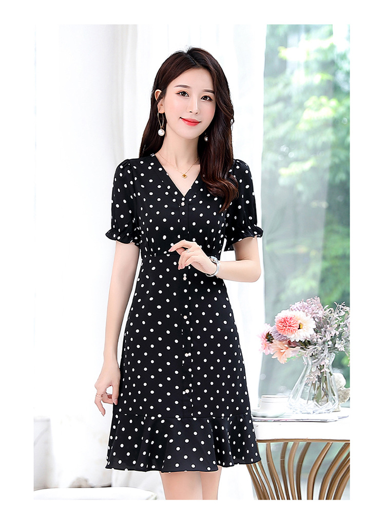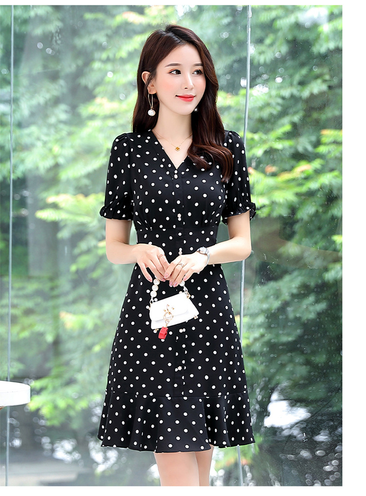 气质大方时尚潮流气质优雅高腰圆点潮流HR-WM20679