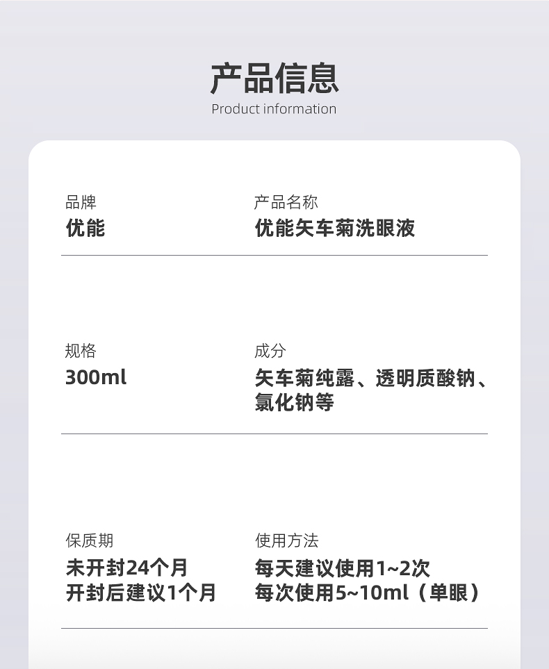 【新包装】优能矢车菊300ml草本植萃洗眼液