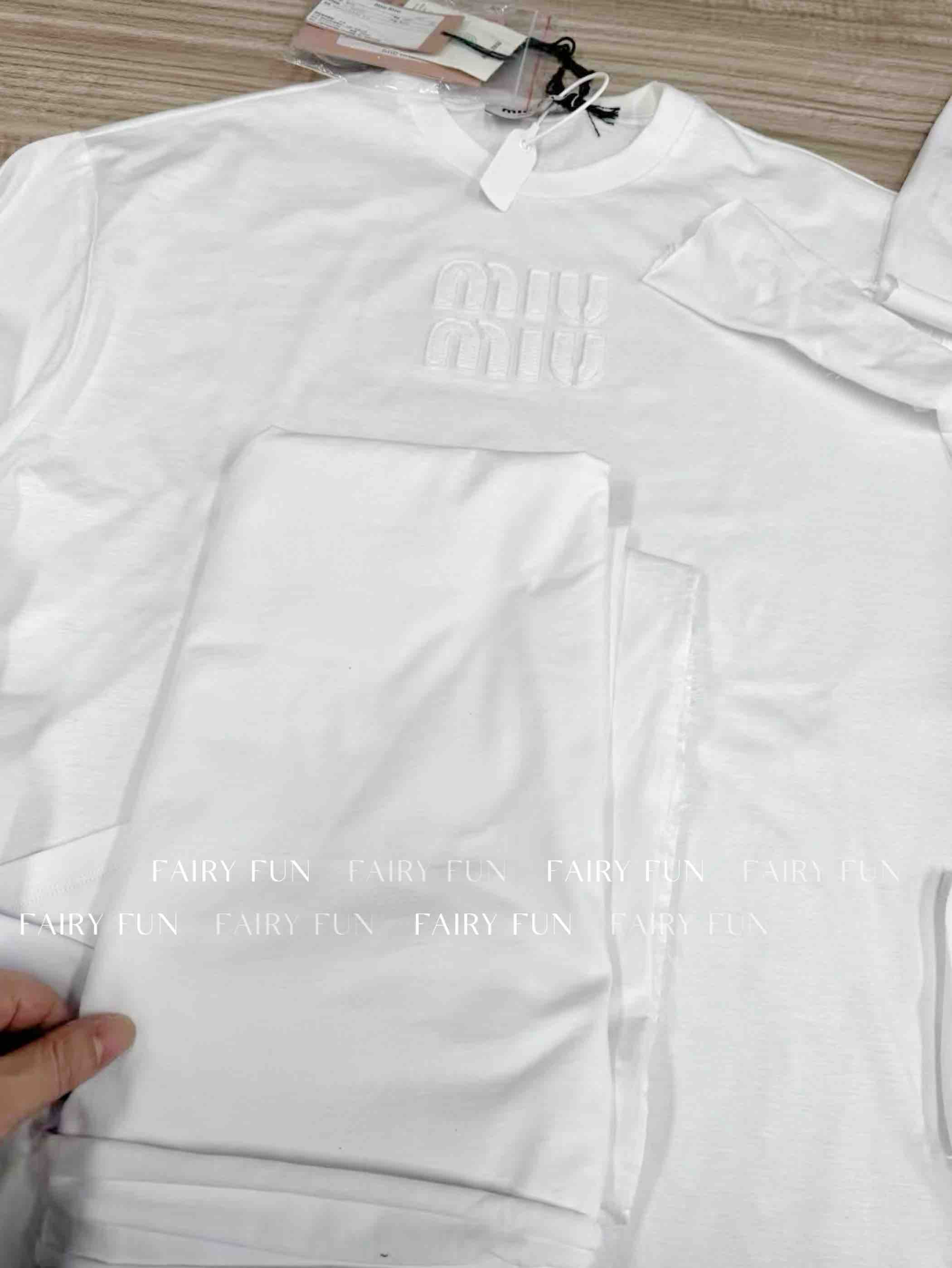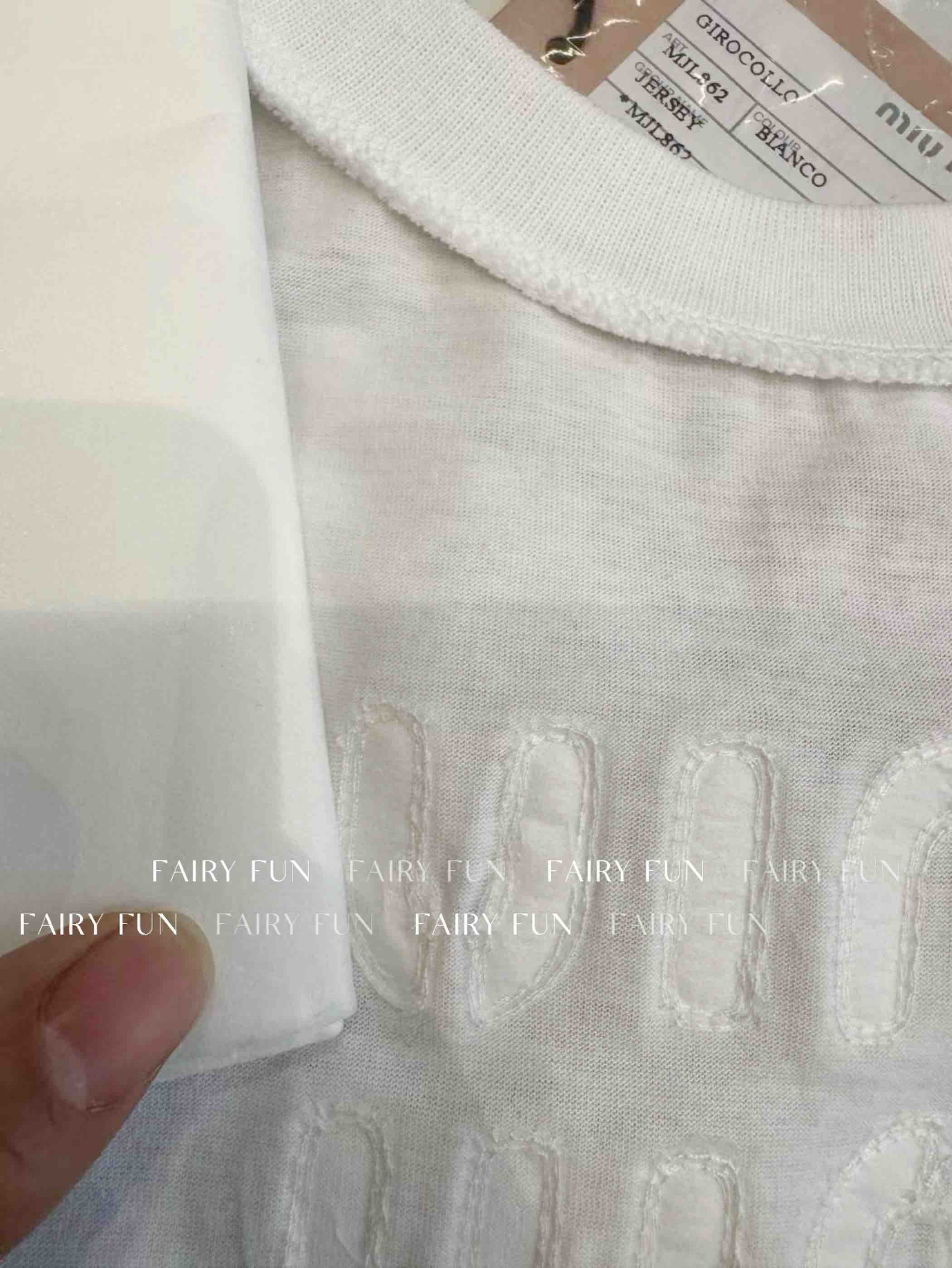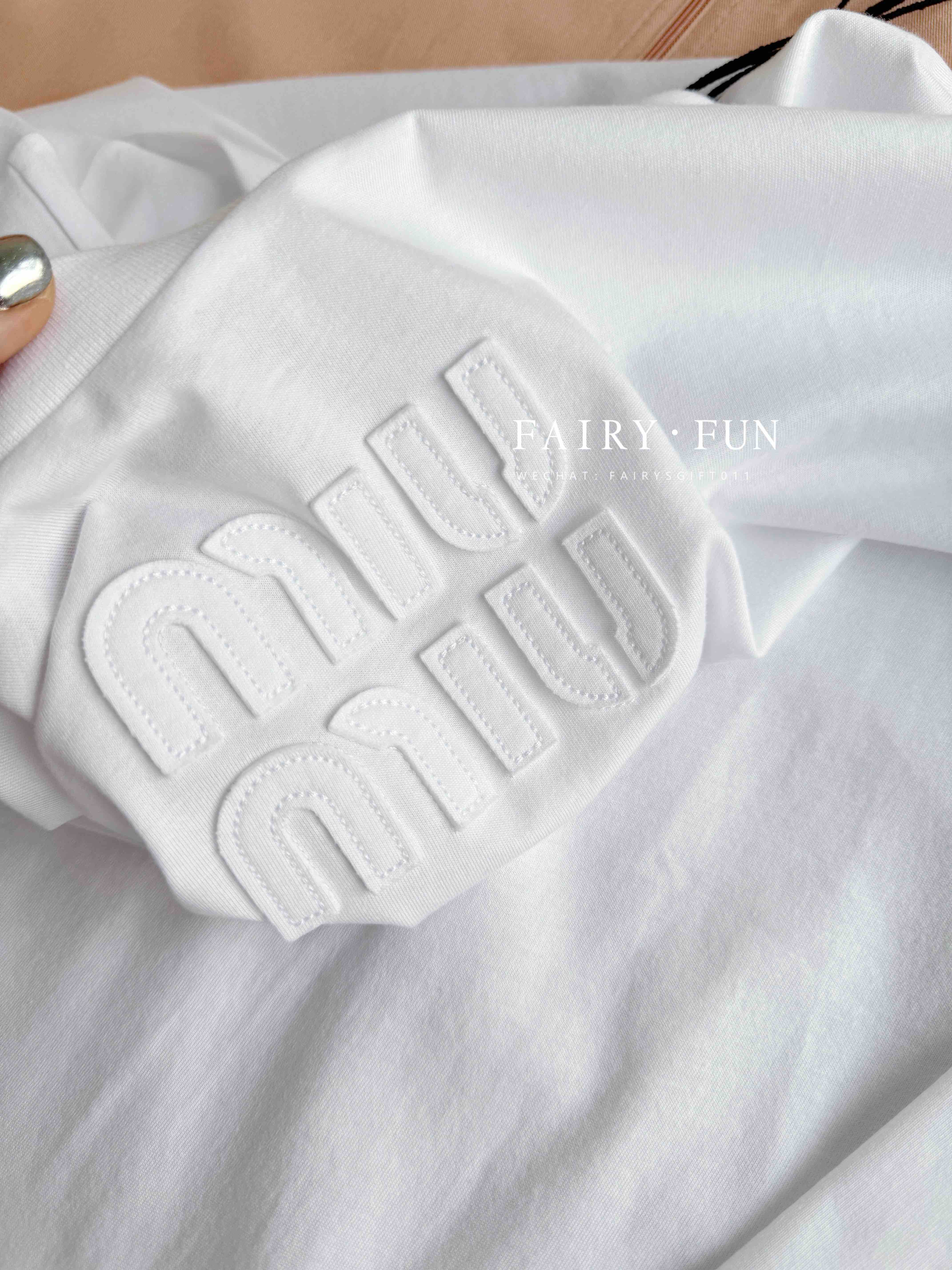 MIU-T 贴布绣白色长袖T恤