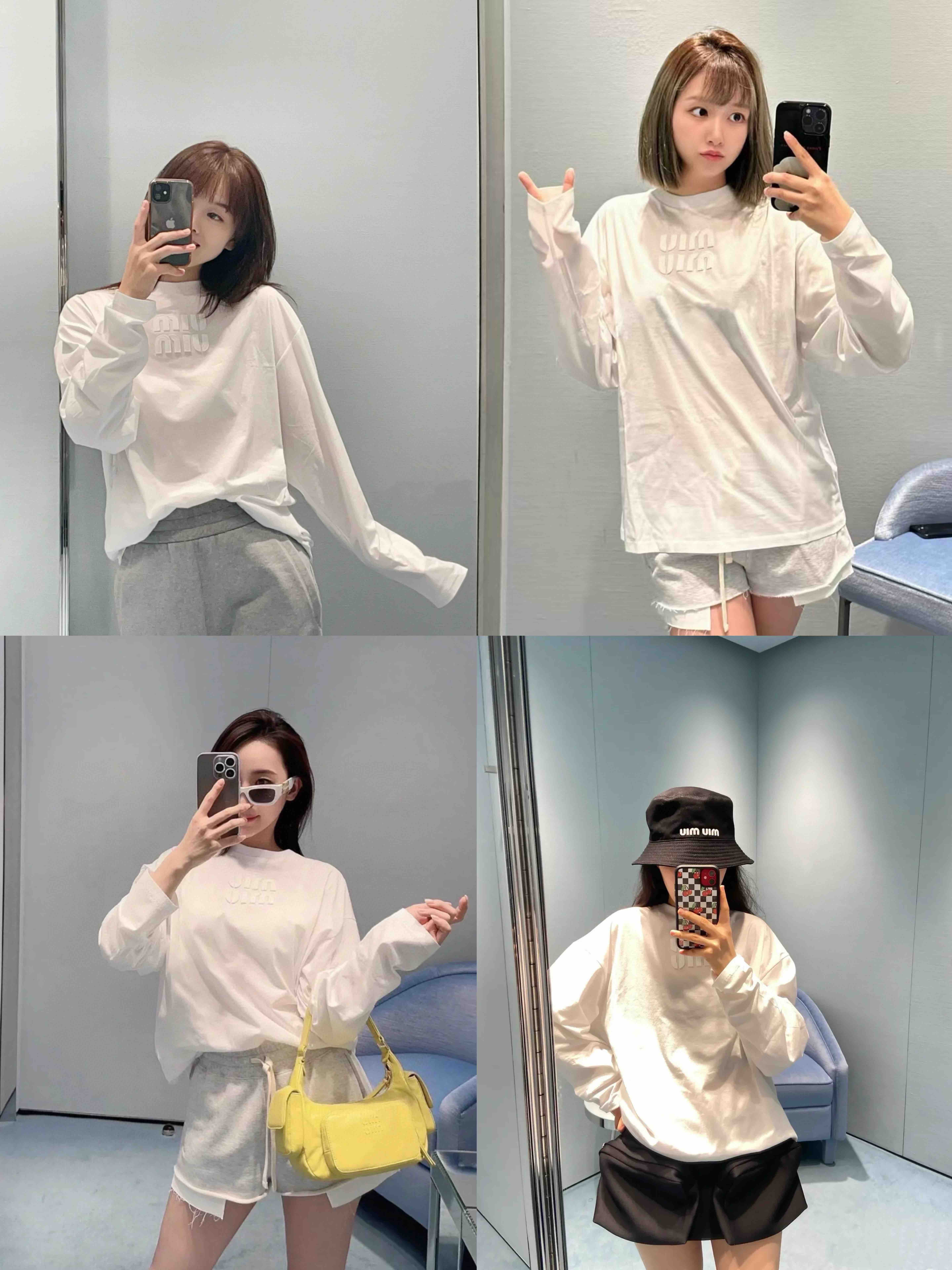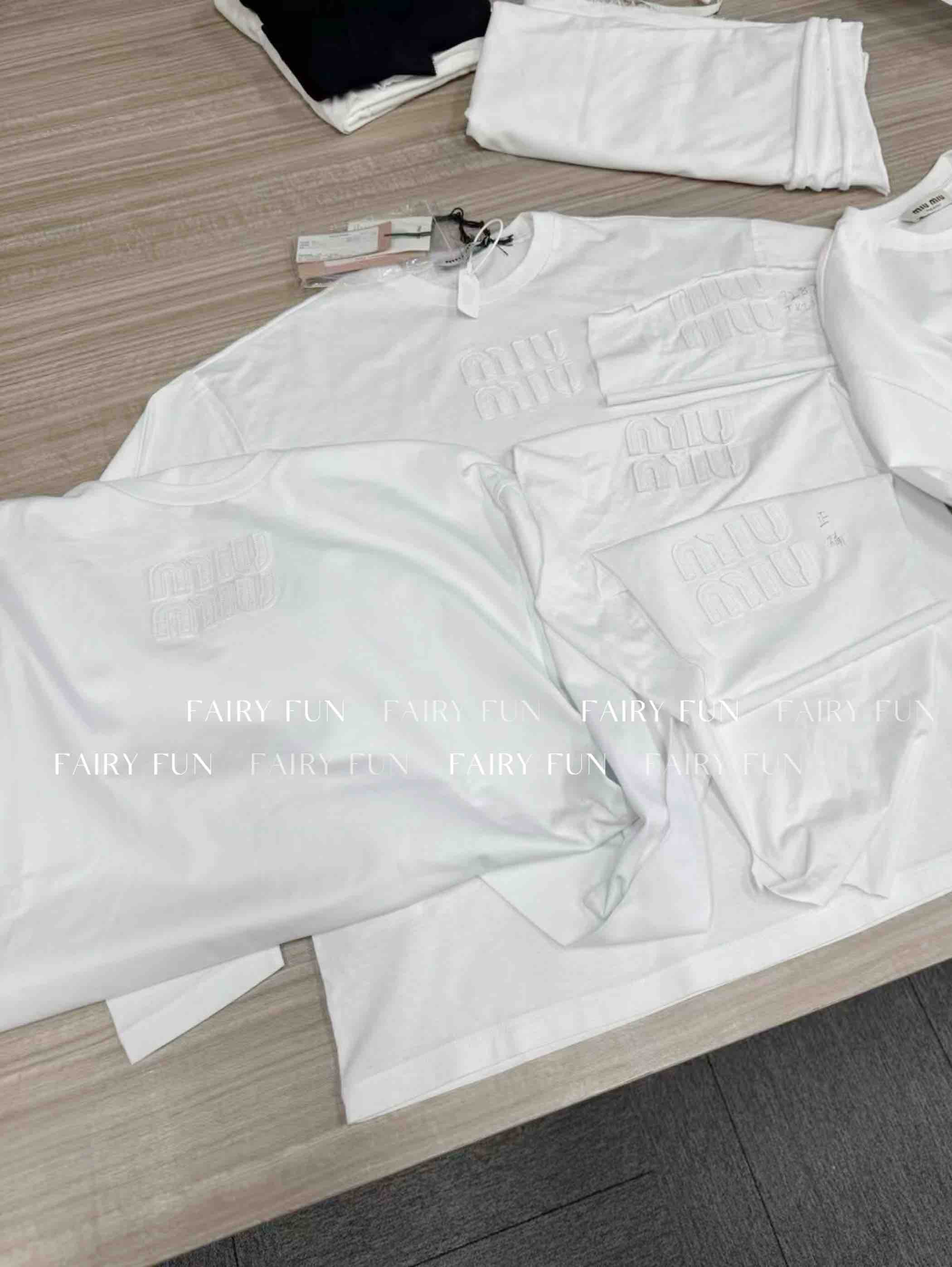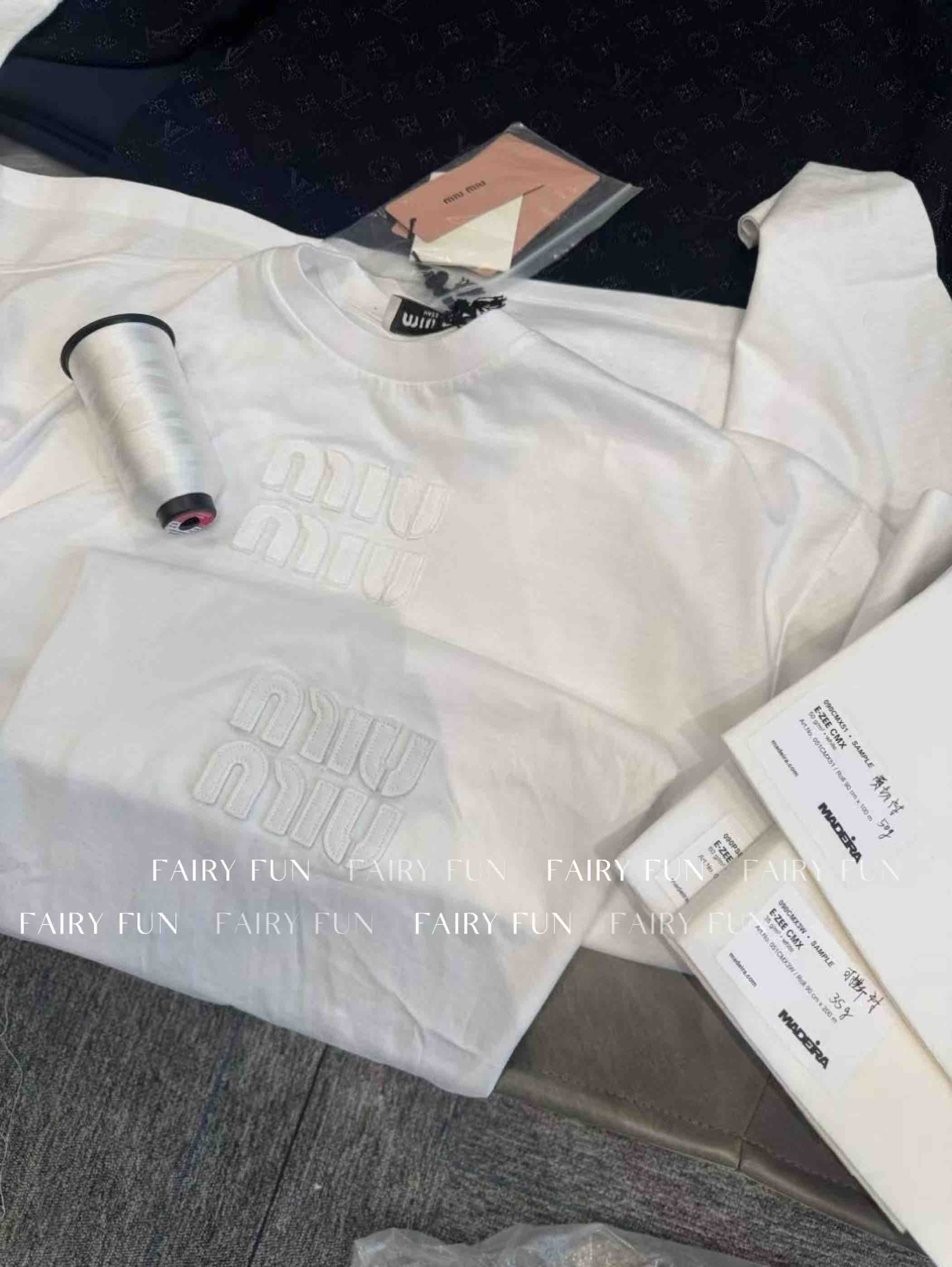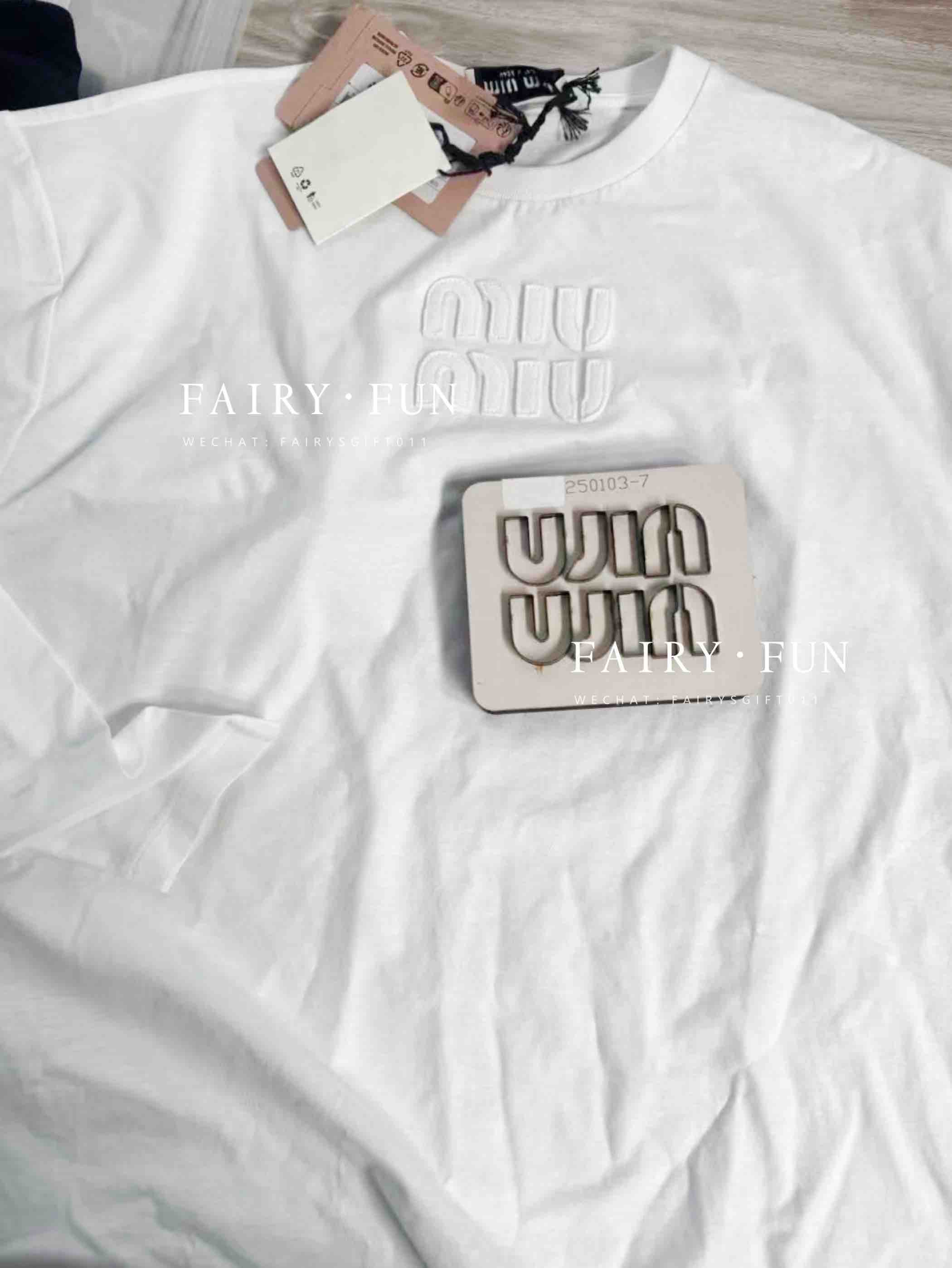 MIU-T 贴布绣白色长袖T恤