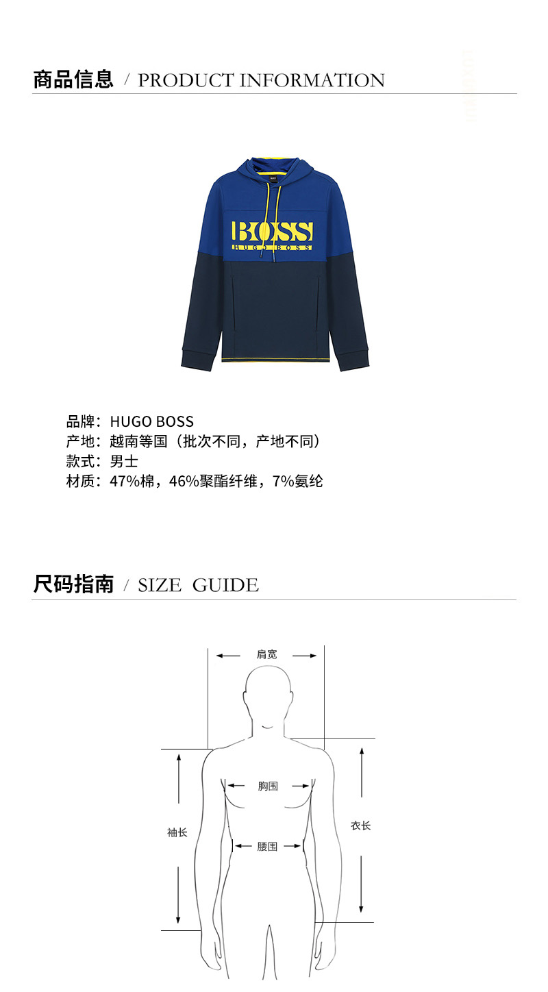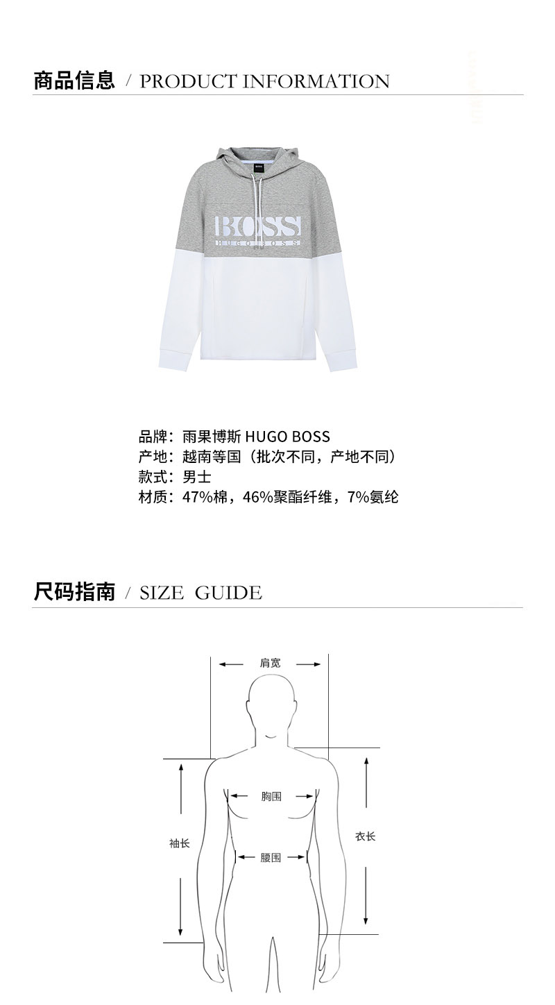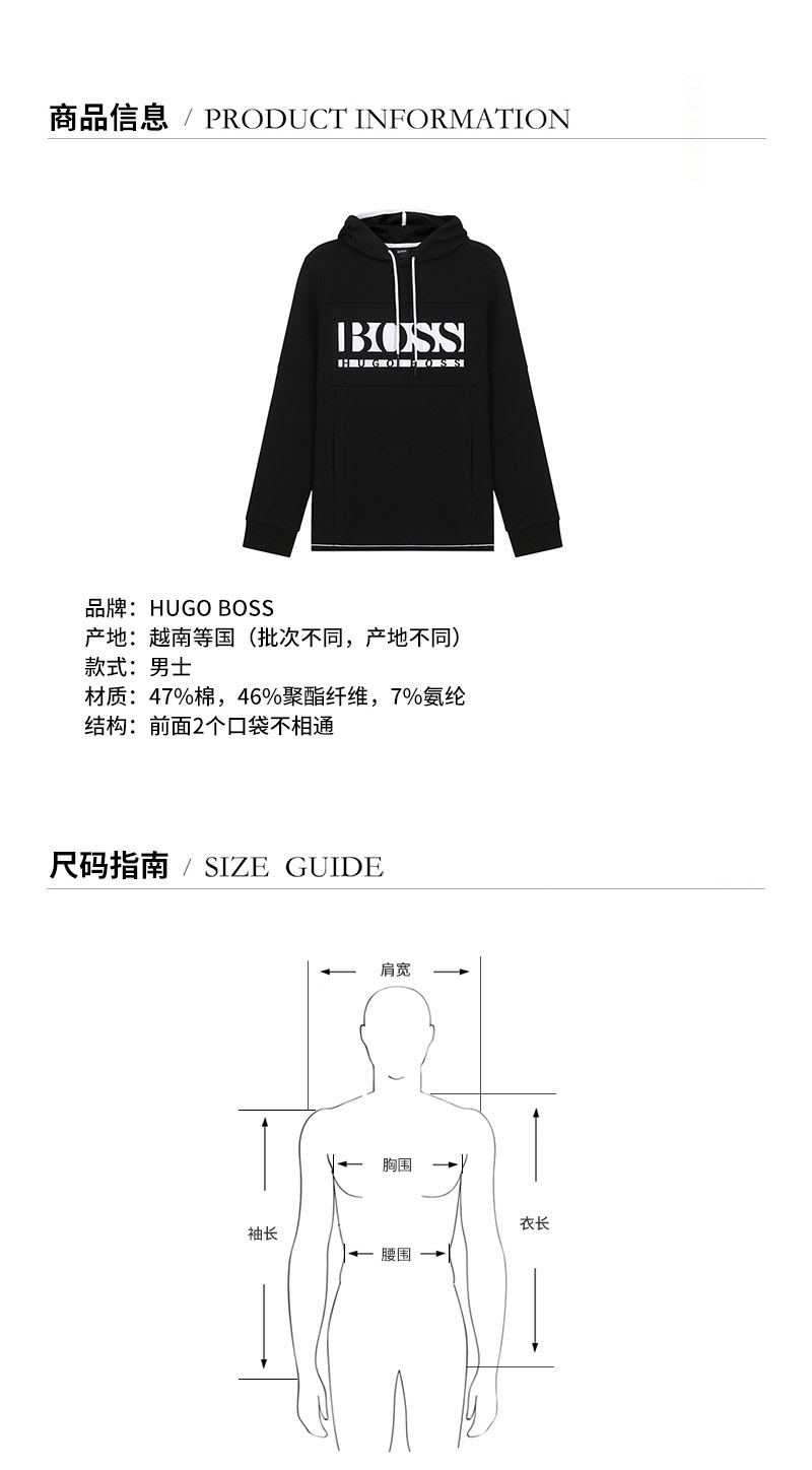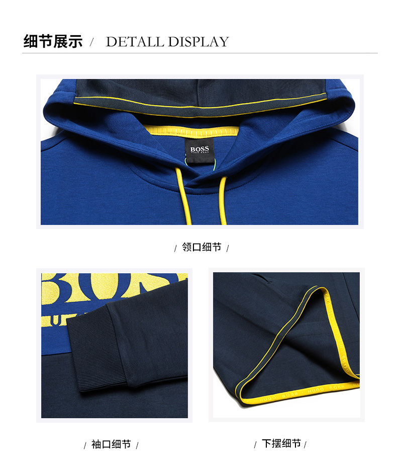 HUGO BOSS/雨果博斯 男卫衣 男士棉/聚酯纤维连帽长袖卫衣运动衫 50451159