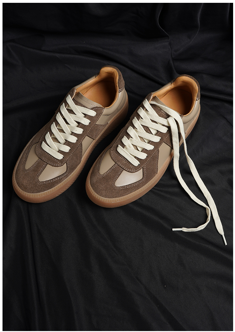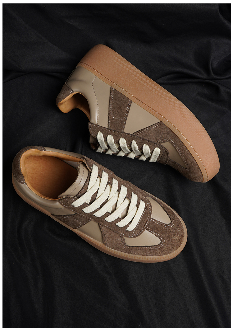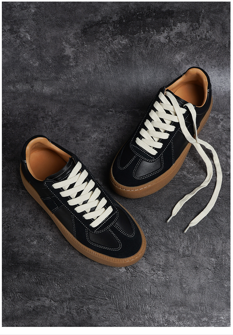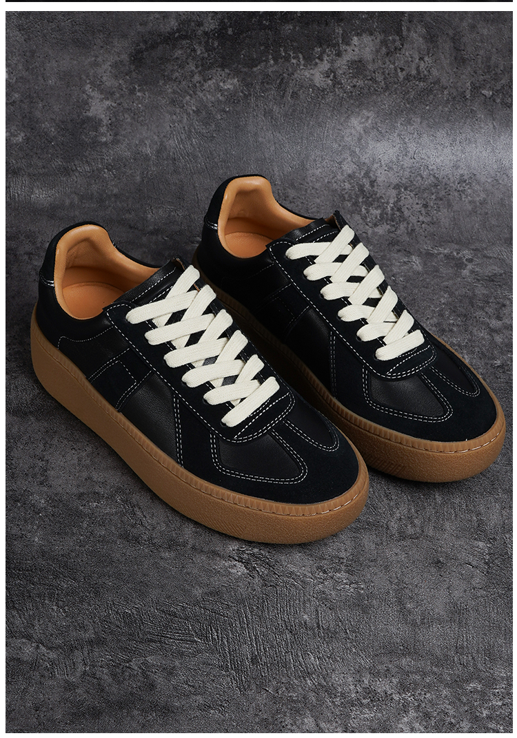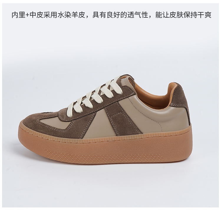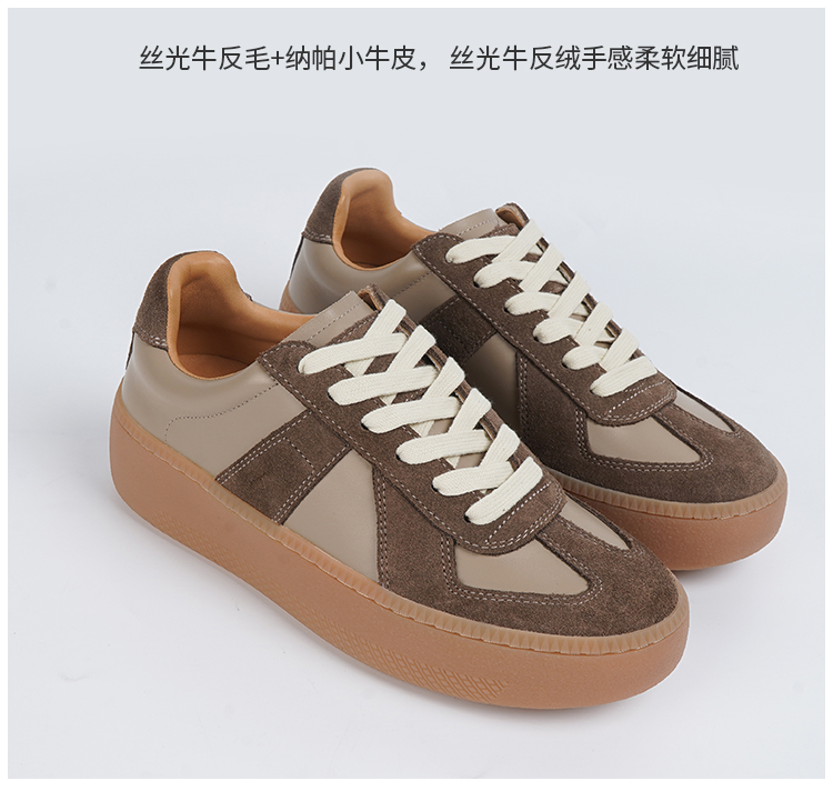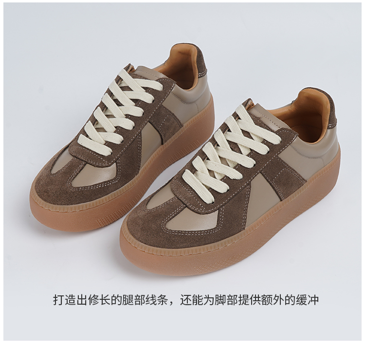 BESSIEIE爆款法国进口皮厚底休闲德训鞋