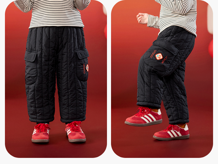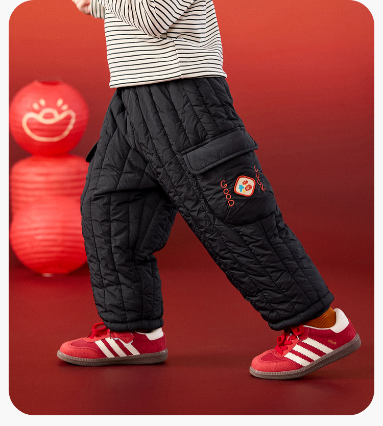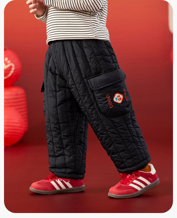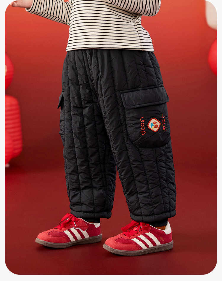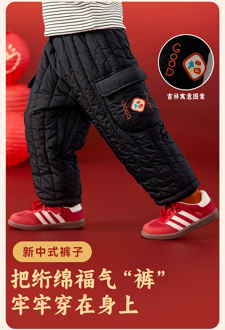 嘟嘟家儿童唐装裤子冬季宝宝拜年服长裤男童女童棉裤加绒加厚冬季年装