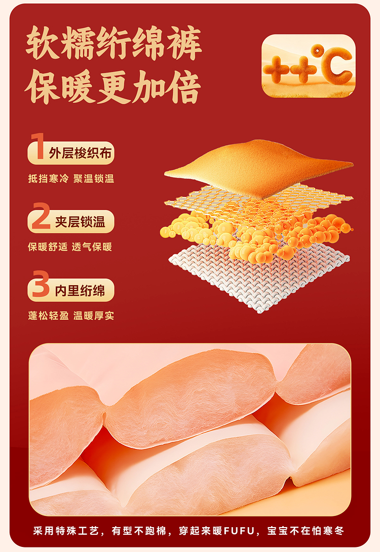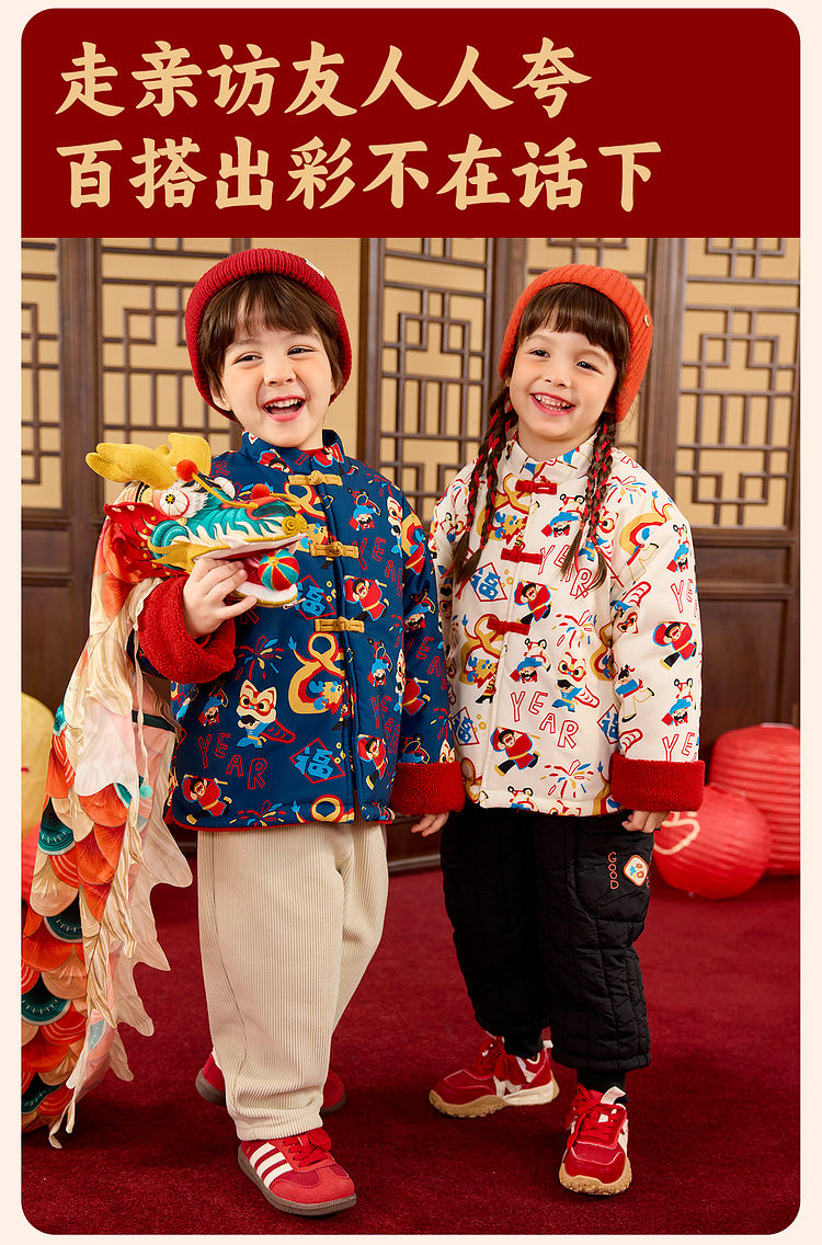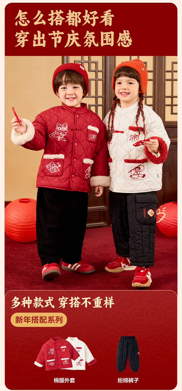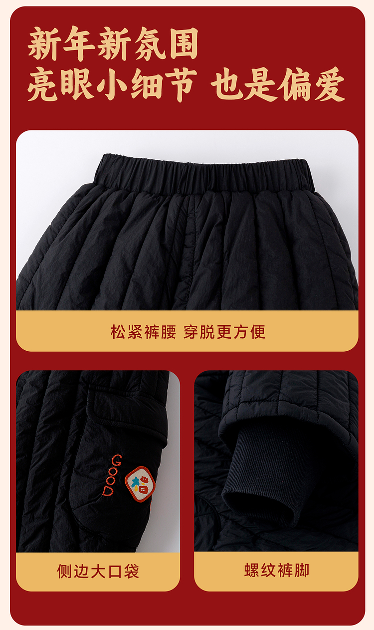 嘟嘟家儿童唐装裤子冬季宝宝拜年服长裤男童女童棉裤加绒加厚冬季年装