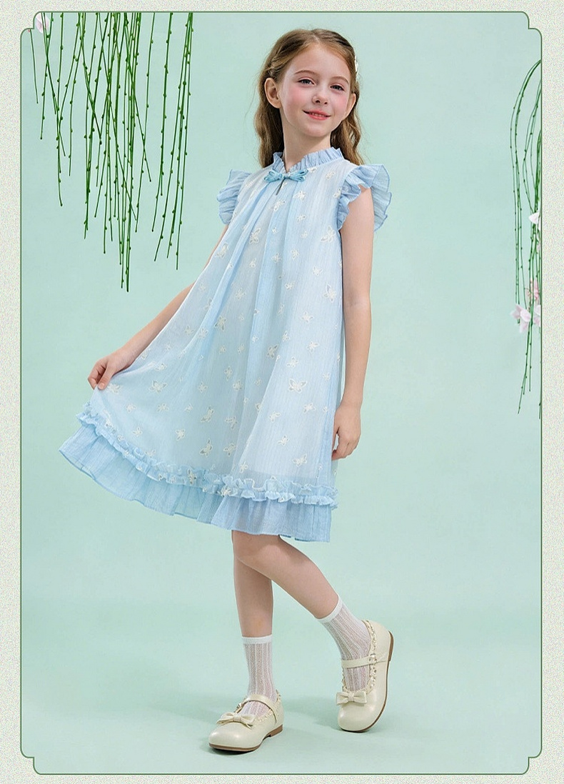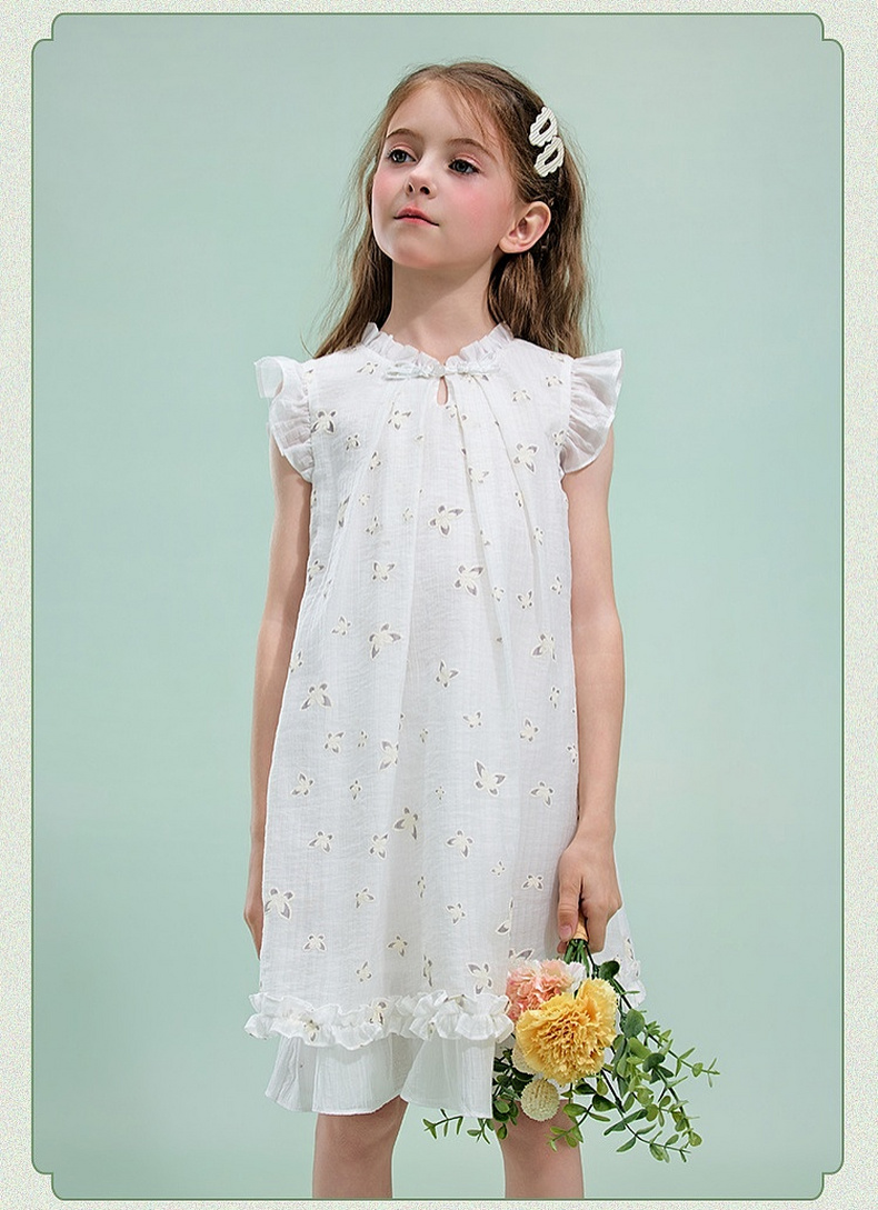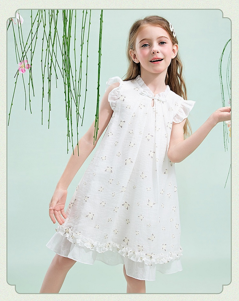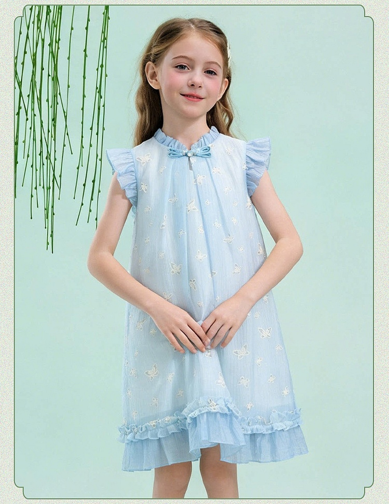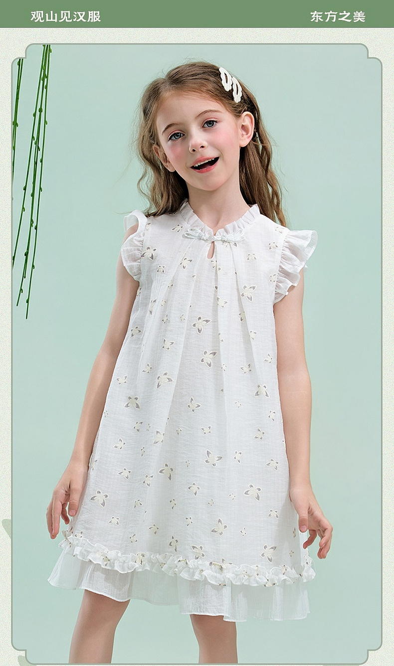 笛莎/Deesha 观山见2026年夏季新款童装女童国风小飞袖连衣裙