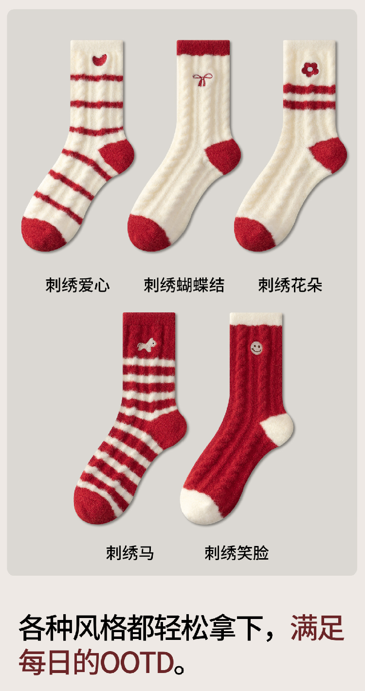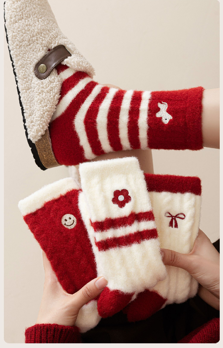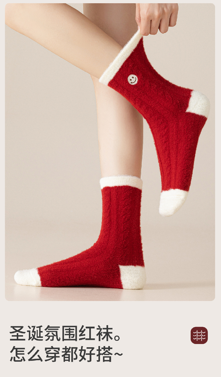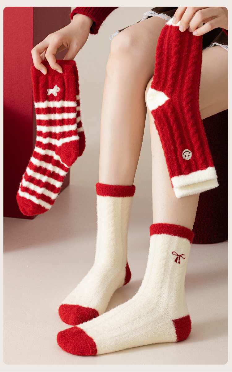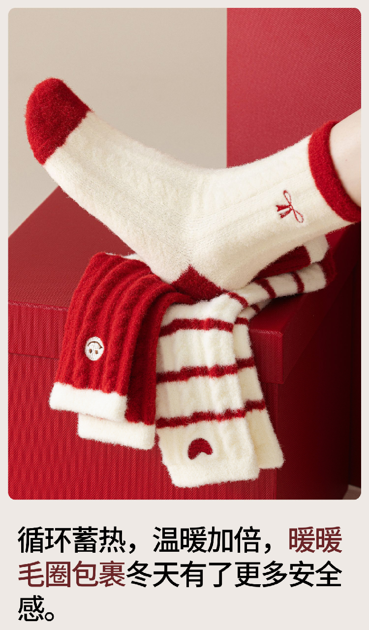 毛绒袜子女款秋冬季加绒加厚保暖澳绒可爱珊瑚绒睡眠月子中筒长袜