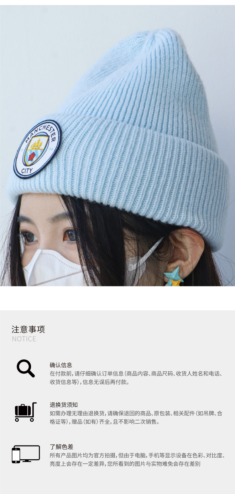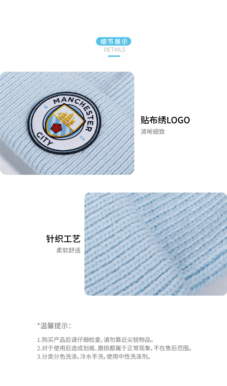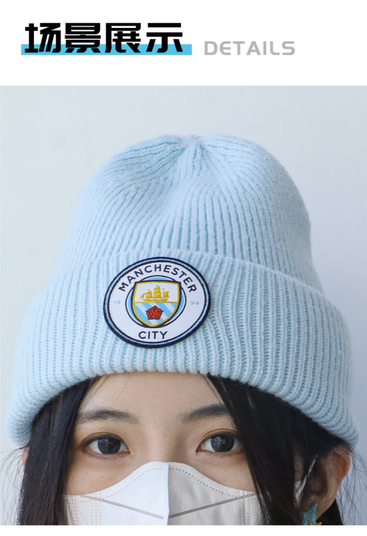 【官方正版】曼城俱乐部 | 蓝色队徽毛线帽针织刺绣保暖帽