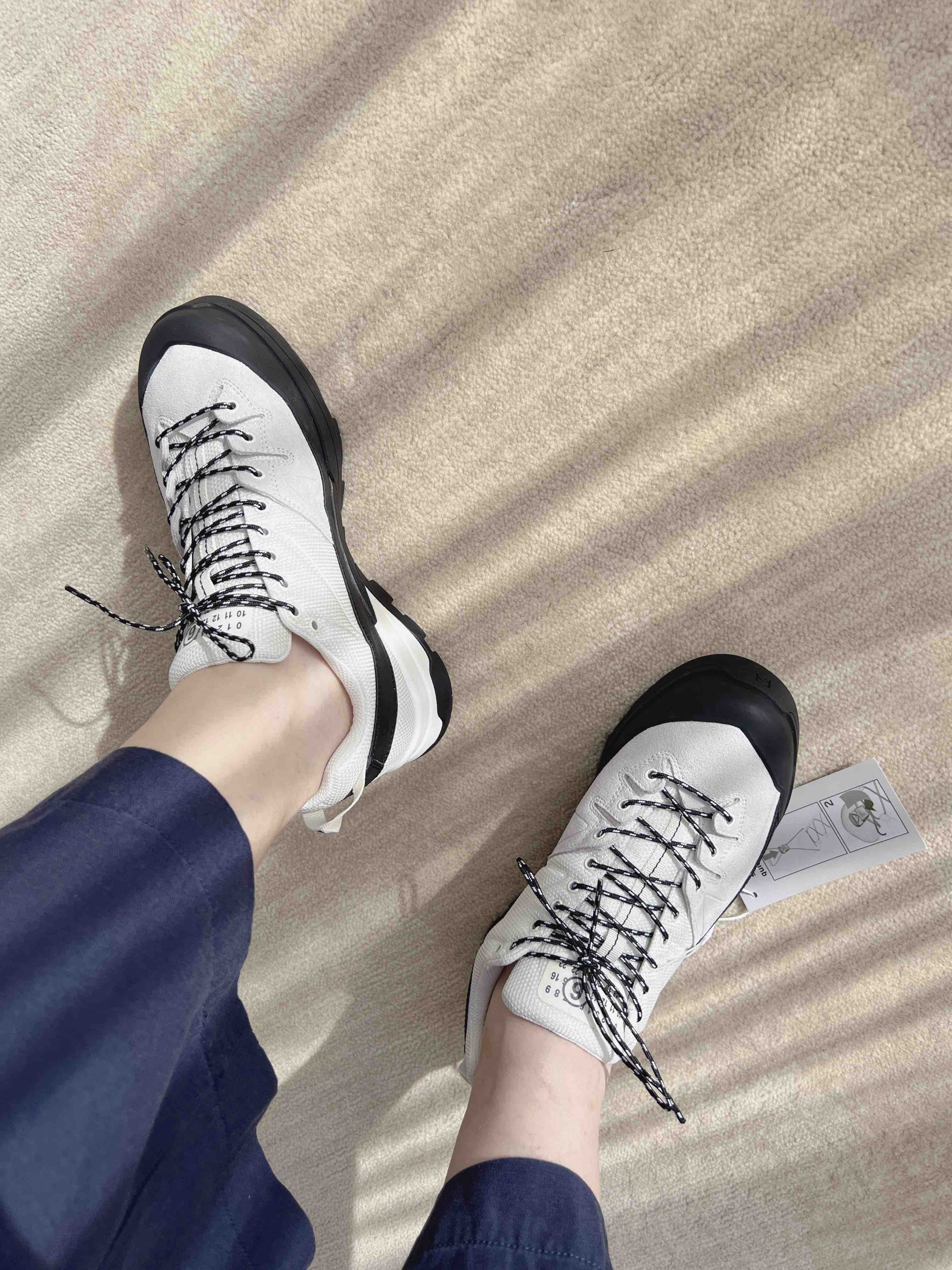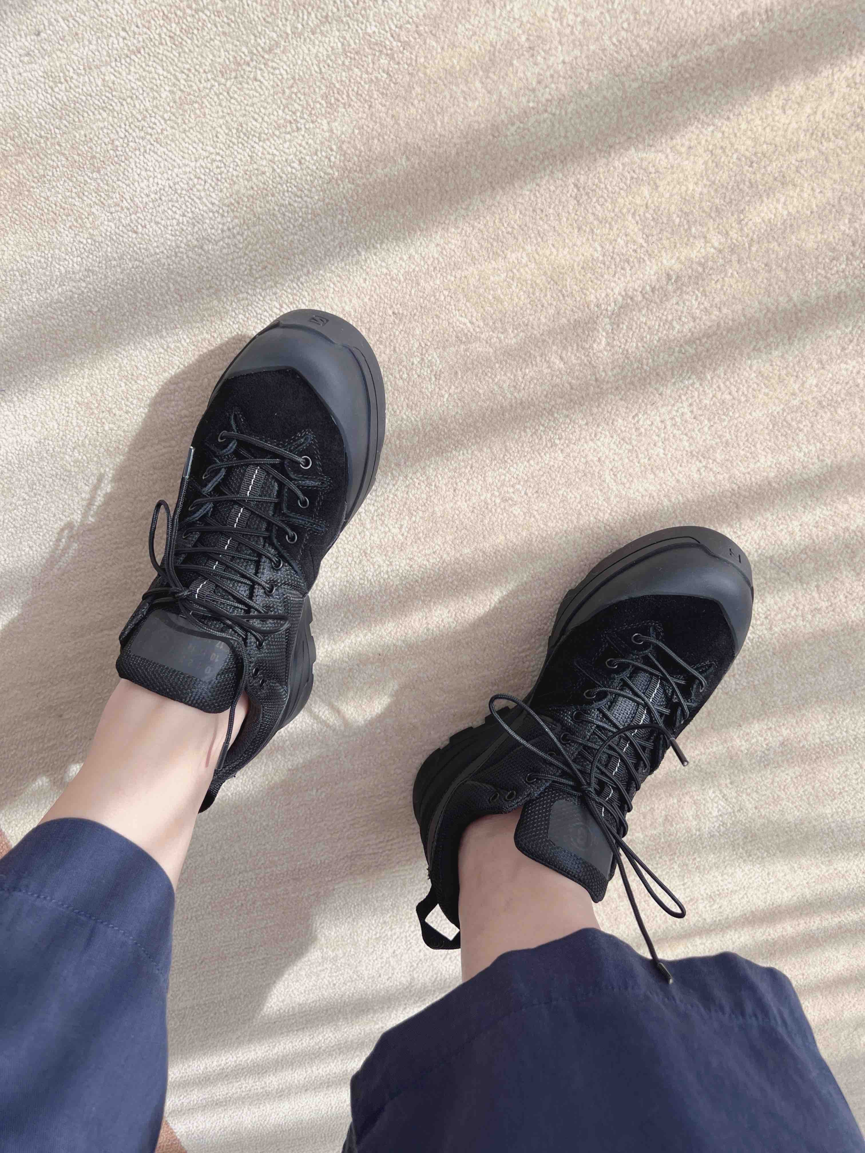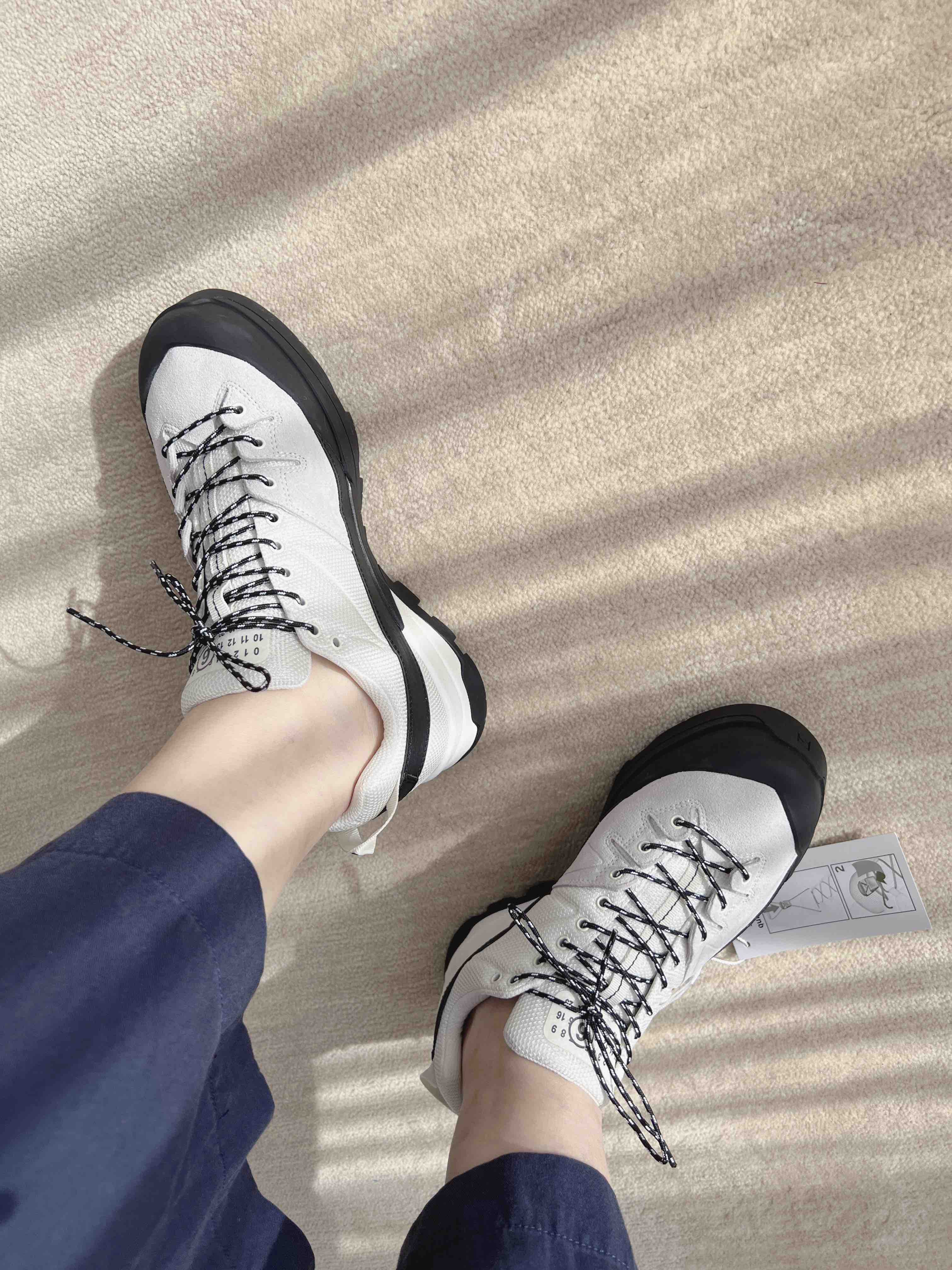 这次是MM6选了X-ALP作为合作款的底板,这个原型也是sal以往专业的登山鞋款,鞋子使用的是3D edgingchassis稳定系统,我其实不懂啥系统,穿上就是相当的稳当,扎实,挺拔,耐用,中底软弹,外底够支撑,够防滑耐磨,虽然不是超软的鞋款,但是日常完全足够了。