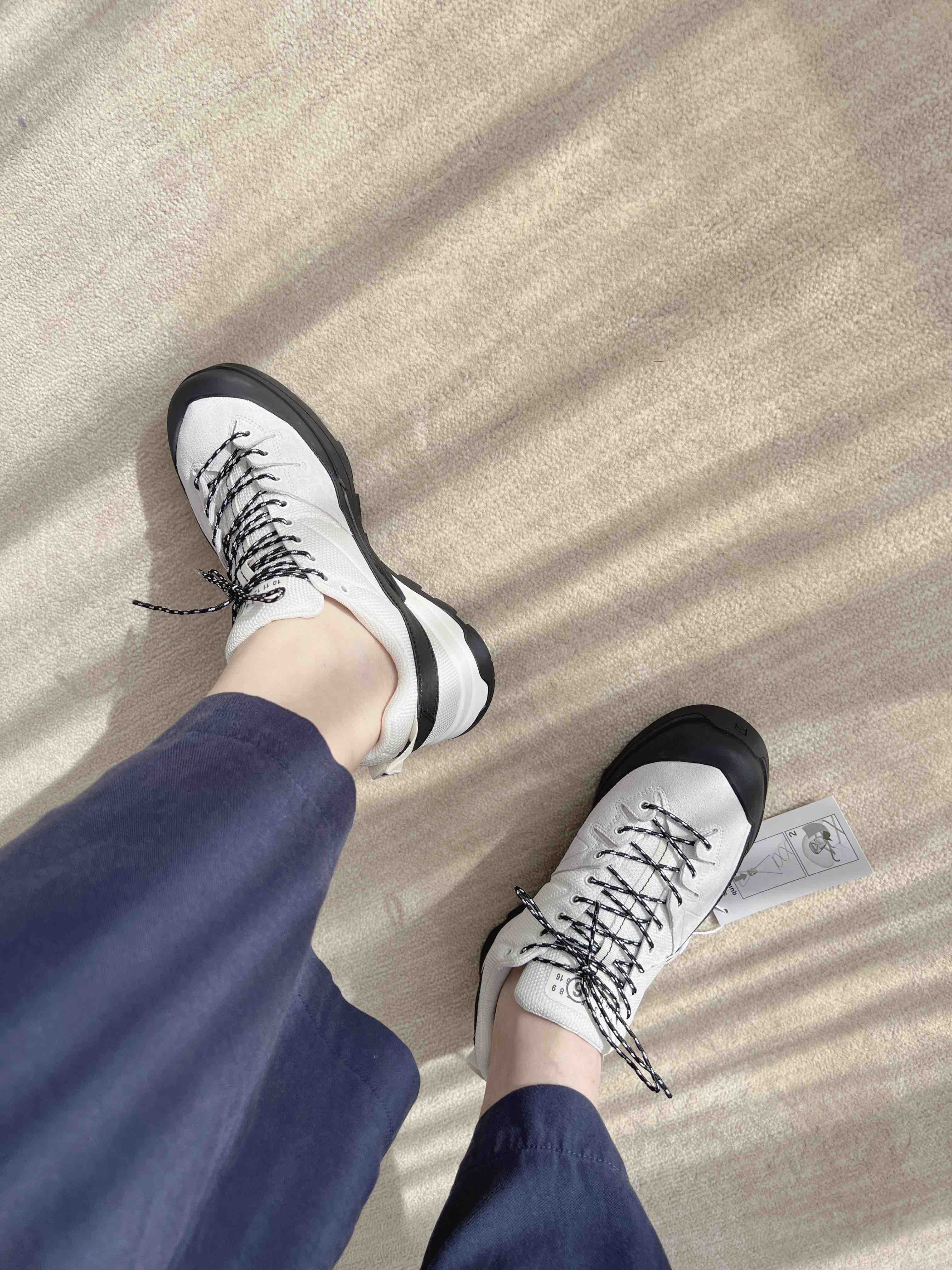 鞋头黑色中分刘海,软橡胶防踢耐磨,鞋面麂皮和科技网布的拼接。大身有拉丝logo,eva轻质发泡中底+tpu防滑耐磨大底,这个组合不仅仅轻便舒适回弹,更加扎实抓地力牢固。鞋垫也是专用的,速干软糯透气,登山鞋火了这么多年,回归日常休闲鞋是宿命。。。。。