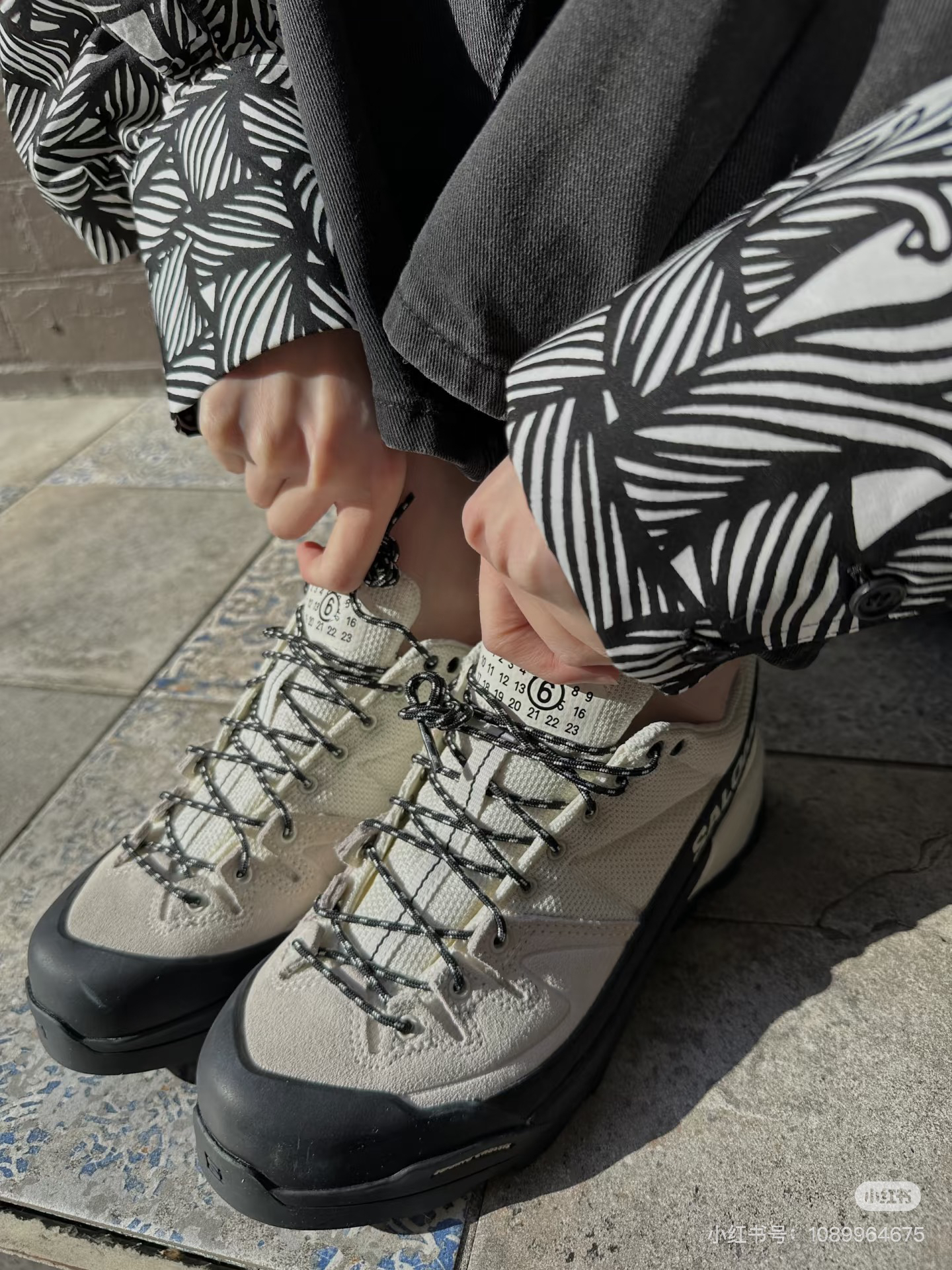 sal和MM6两个最火的牌子联名之后,据说现在买到这双要碰运气了,登山鞋和日常休闲鞋的组合,看着像劳保鞋,but细节很牛掰,找对鞋型,真的提升气质和品味