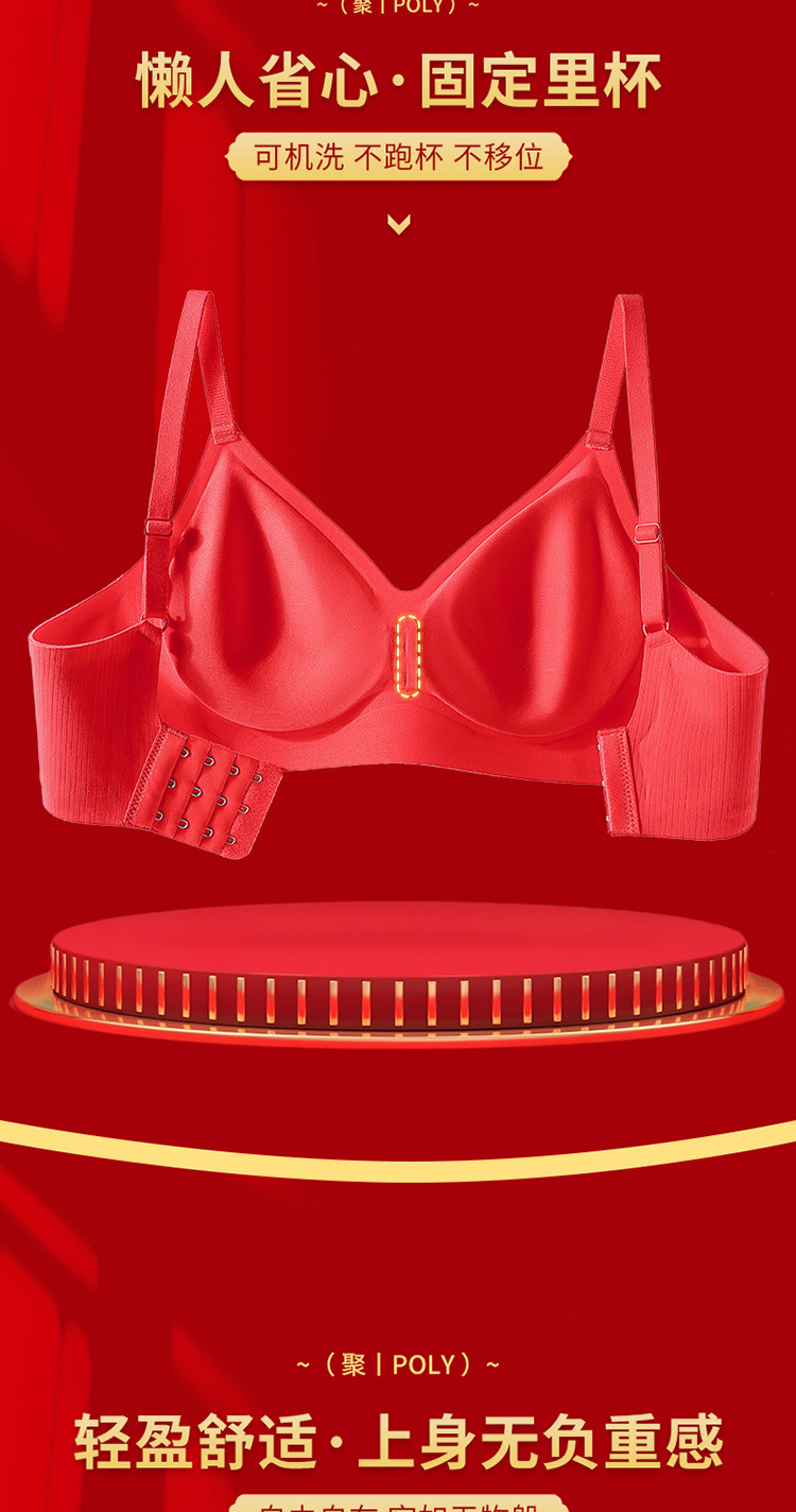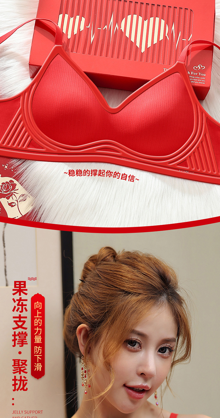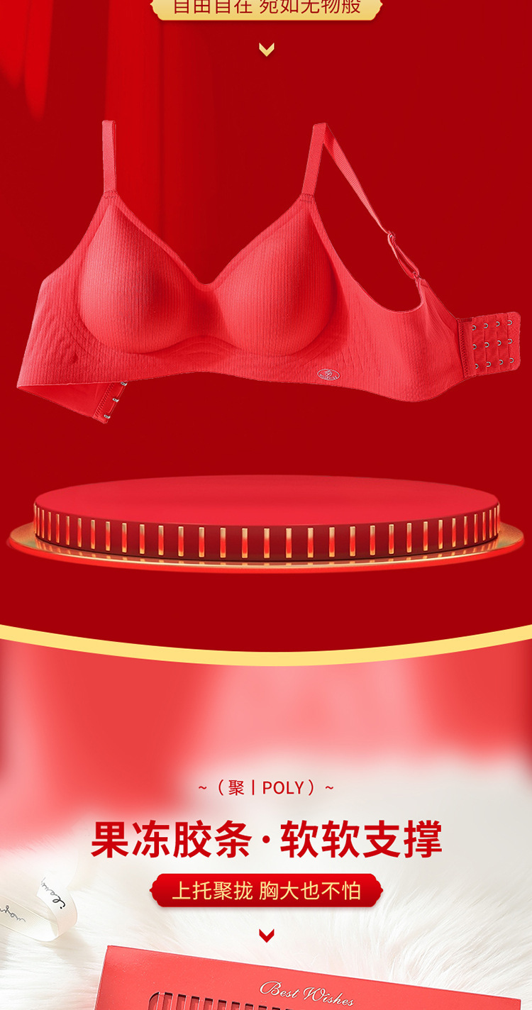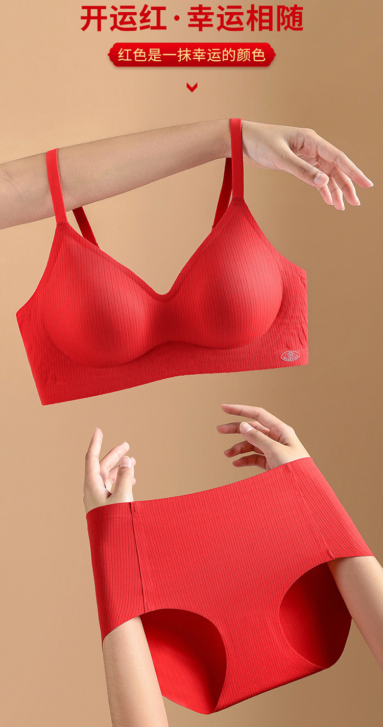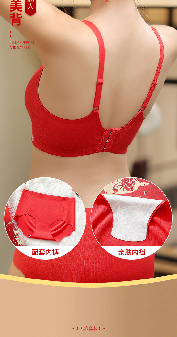 新年大红色【内衣套装女】固定杯聚拢小胸 本命年结婚 文胸罩礼盒