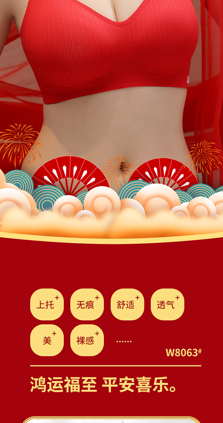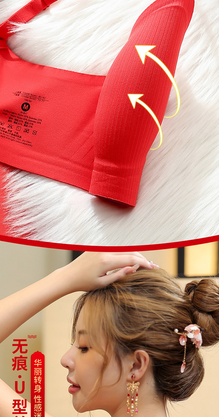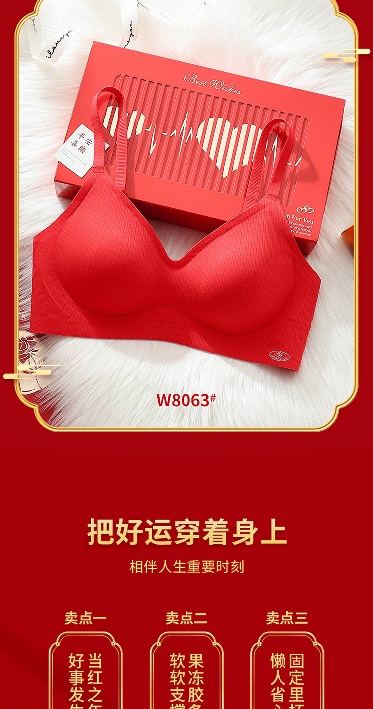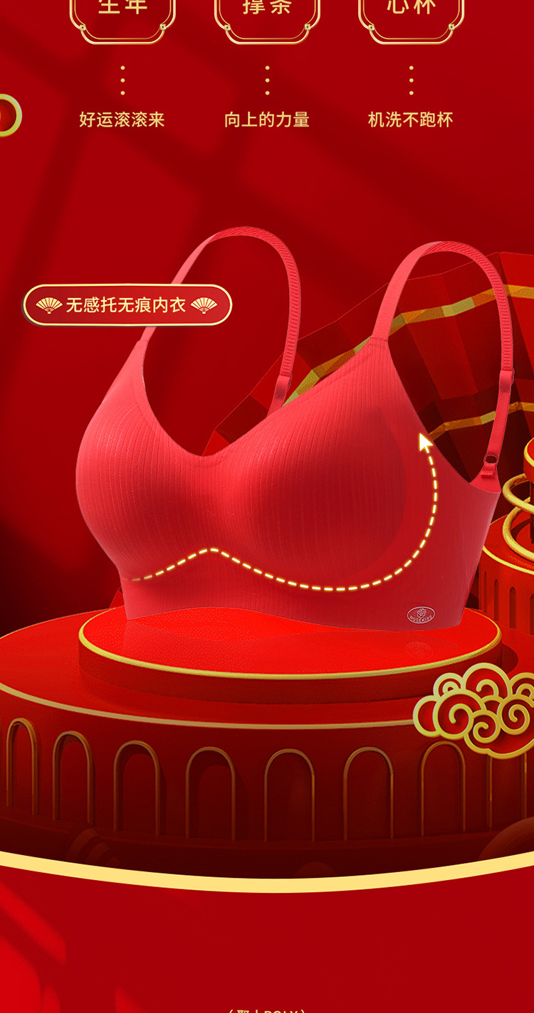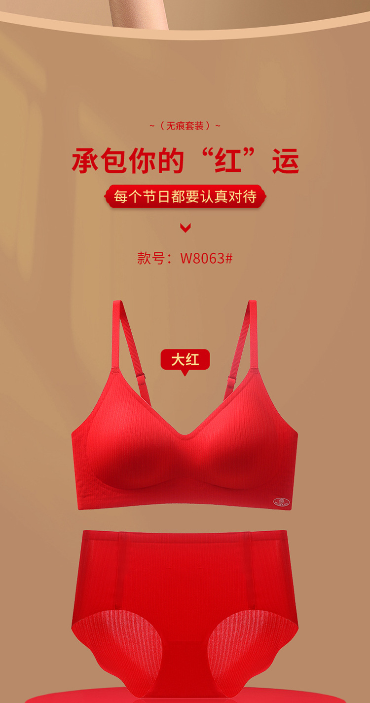 新年大红色【内衣套装女】固定杯聚拢小胸 本命年结婚 文胸罩礼盒