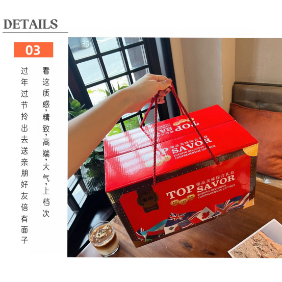 最新版的礼盒包装哦 中国年喜庆包装,让整个零食大礼包都逼格满满,送人也很拿的出手 ,又有心意且不会过分贵重 ,收礼也不会有太多负担 简直完美!!!