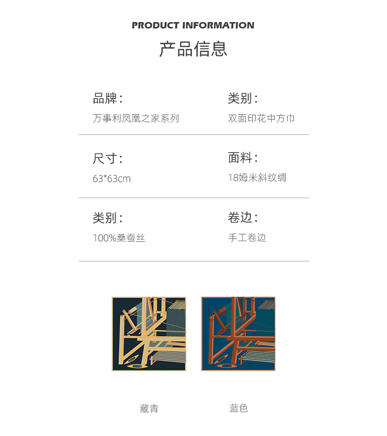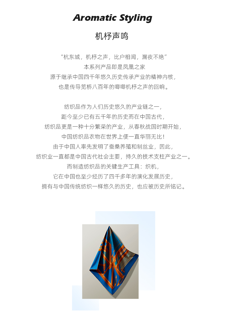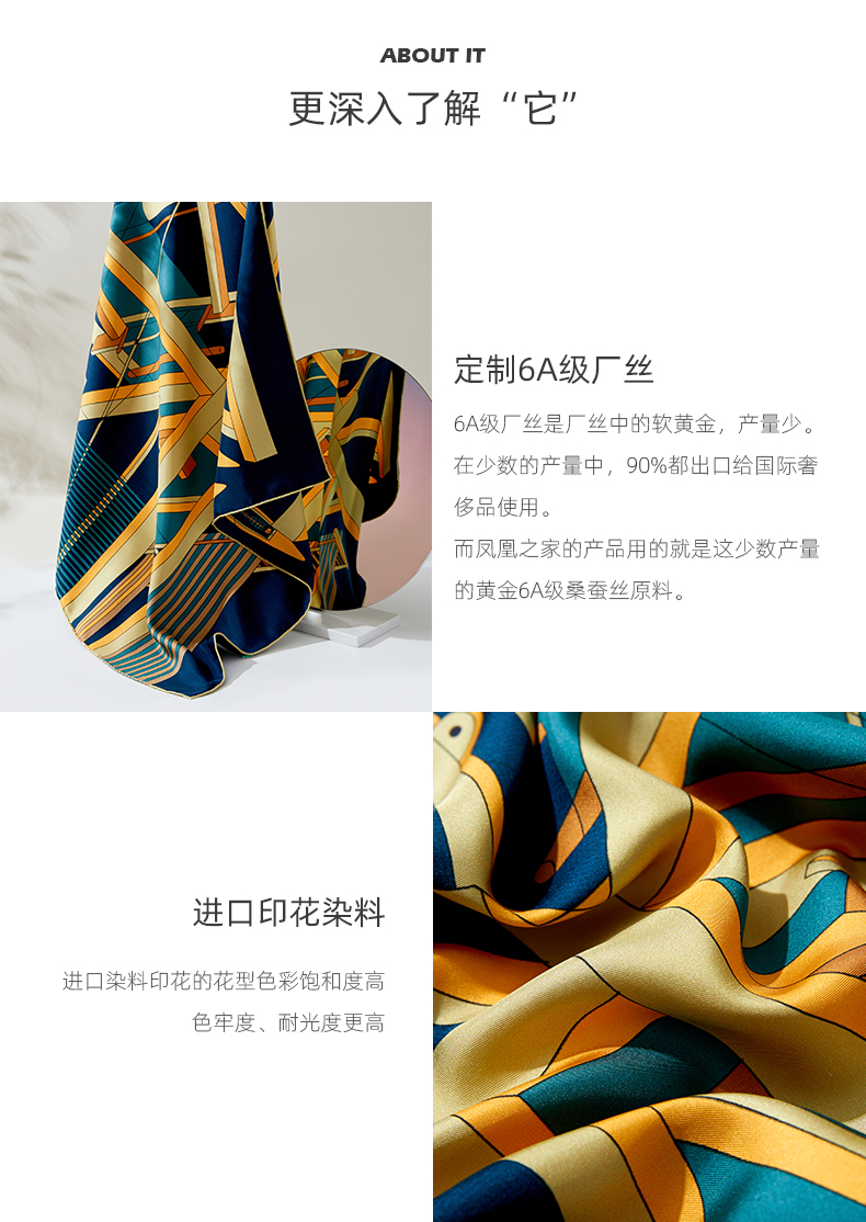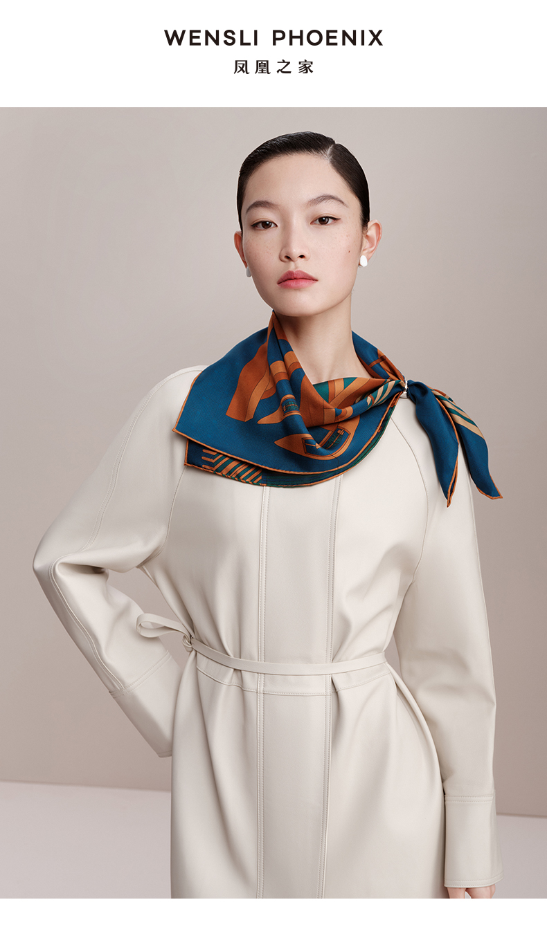 凤凰之家“机杼声鸣”63厘米双面印花真丝中方巾