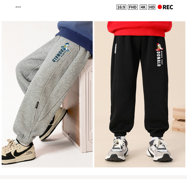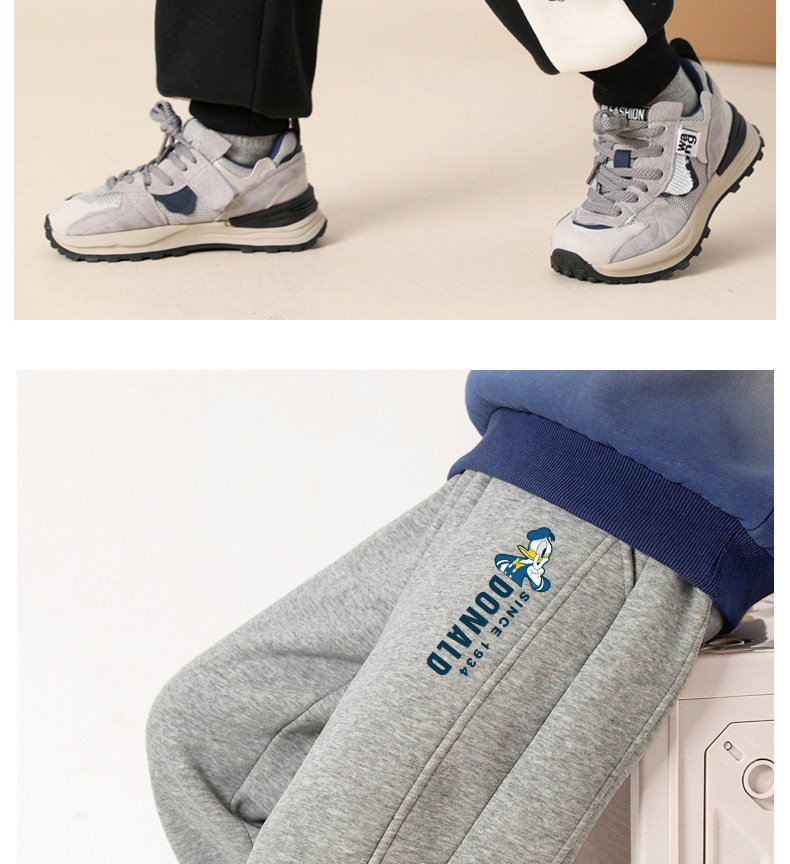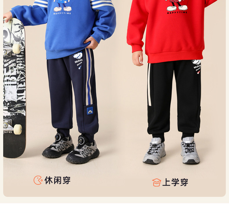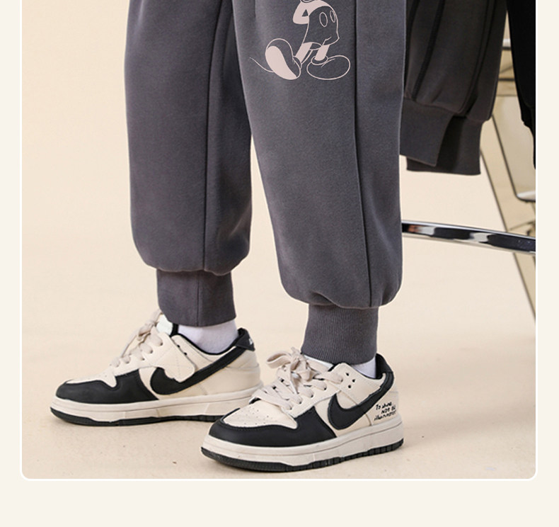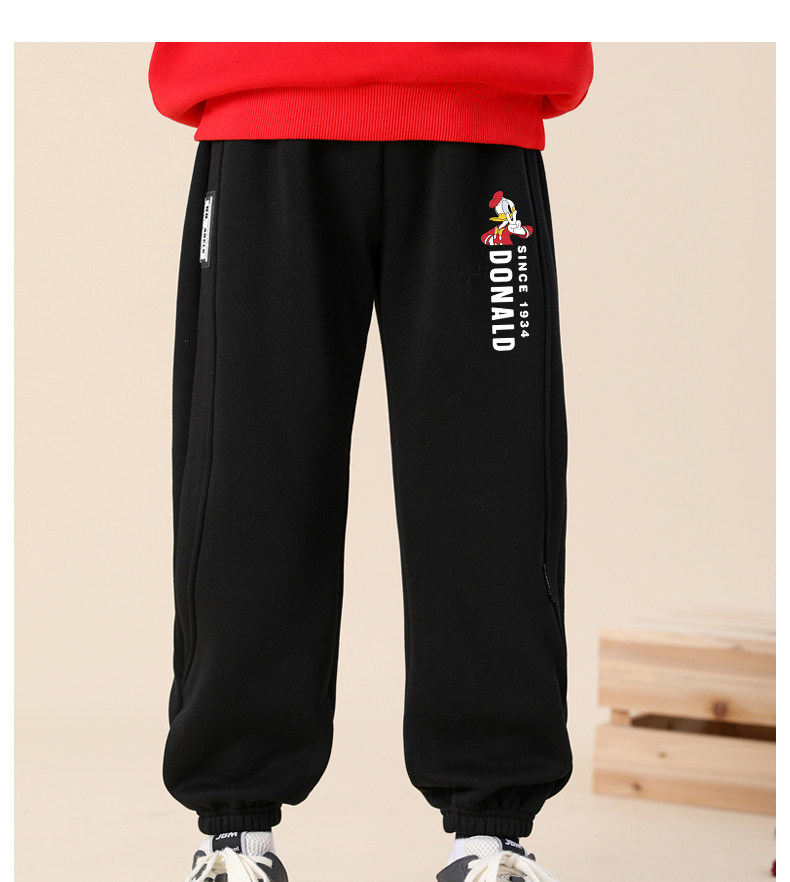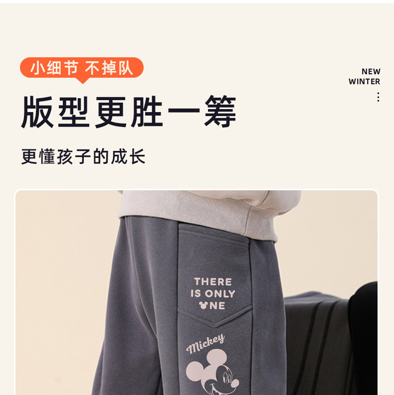 迪士尼男童运动裤加绒一体绒加厚儿童保暖裤男大童裤子秋冬休闲裤