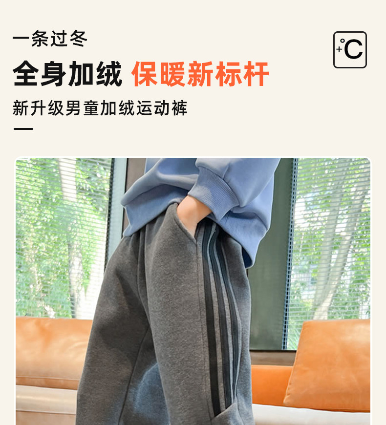 贝田男童加绒裤子秋冬款潮棉裤儿童加厚冬季2024新款一体绒运动裤