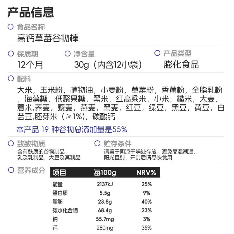 ³ 发4盒【喵小侠草莓谷物棒】添加19种谷物 清香满满 配料简单 30g/盒 XN03-CRMM-HPK