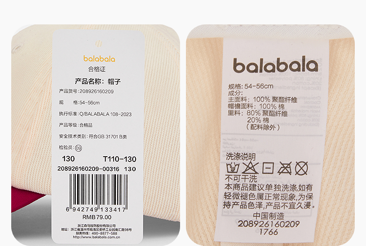 【balaOne】巴拉巴拉儿童帽子男女童棒球帽2026年新款撞色可爱萌