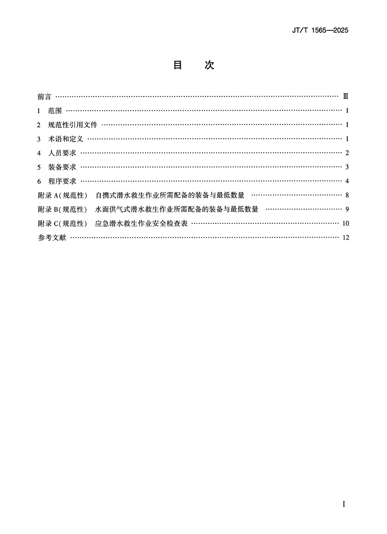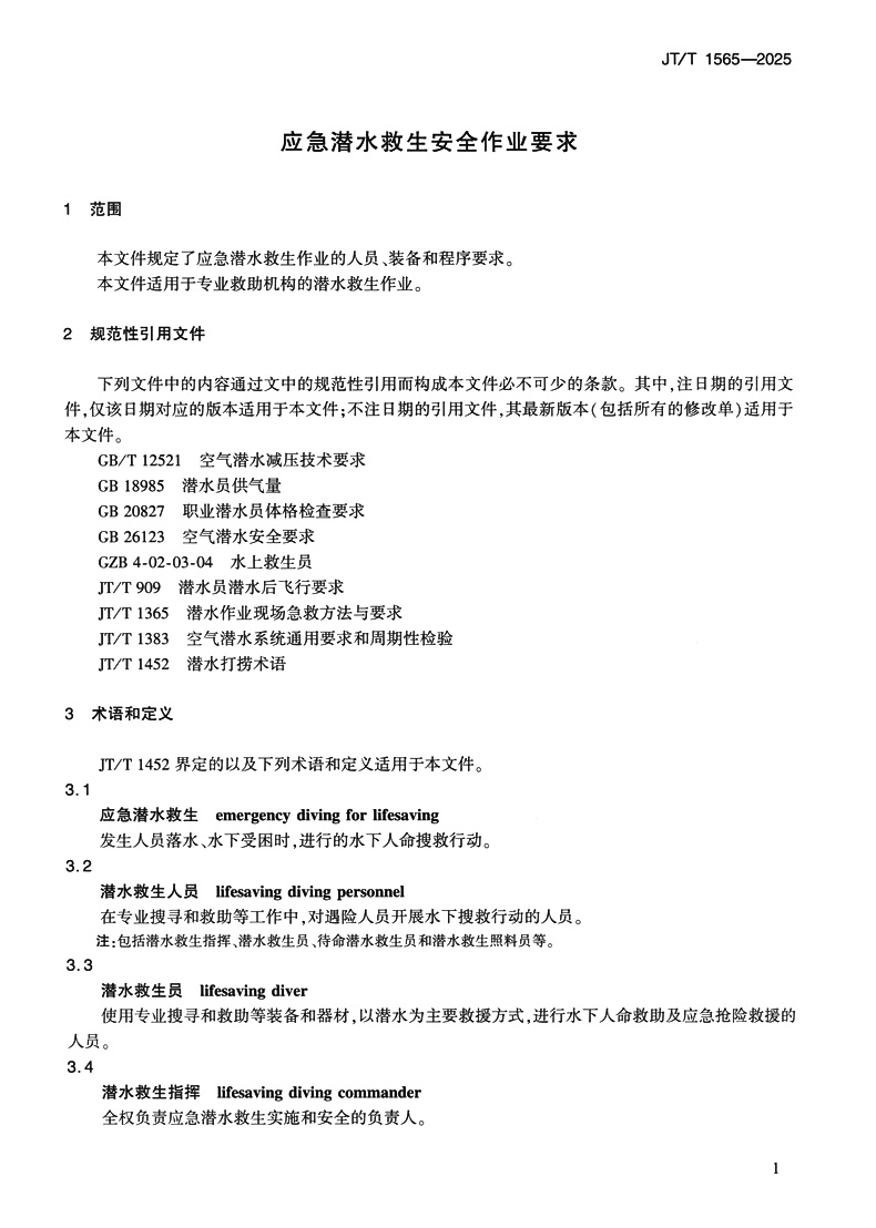 应急潜水救生安全作业要求(JT/T 1565—2025)